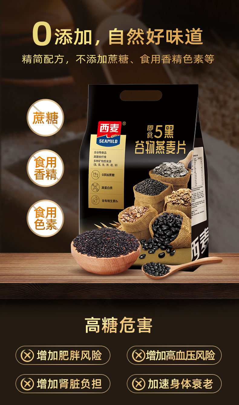 西麦五黑谷物燕麦片45g*12包/*3袋 滋补益肾多吃黑