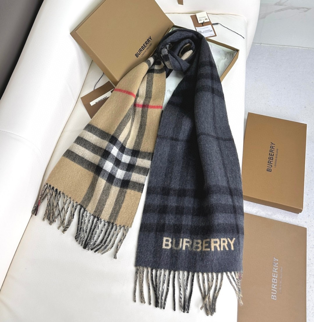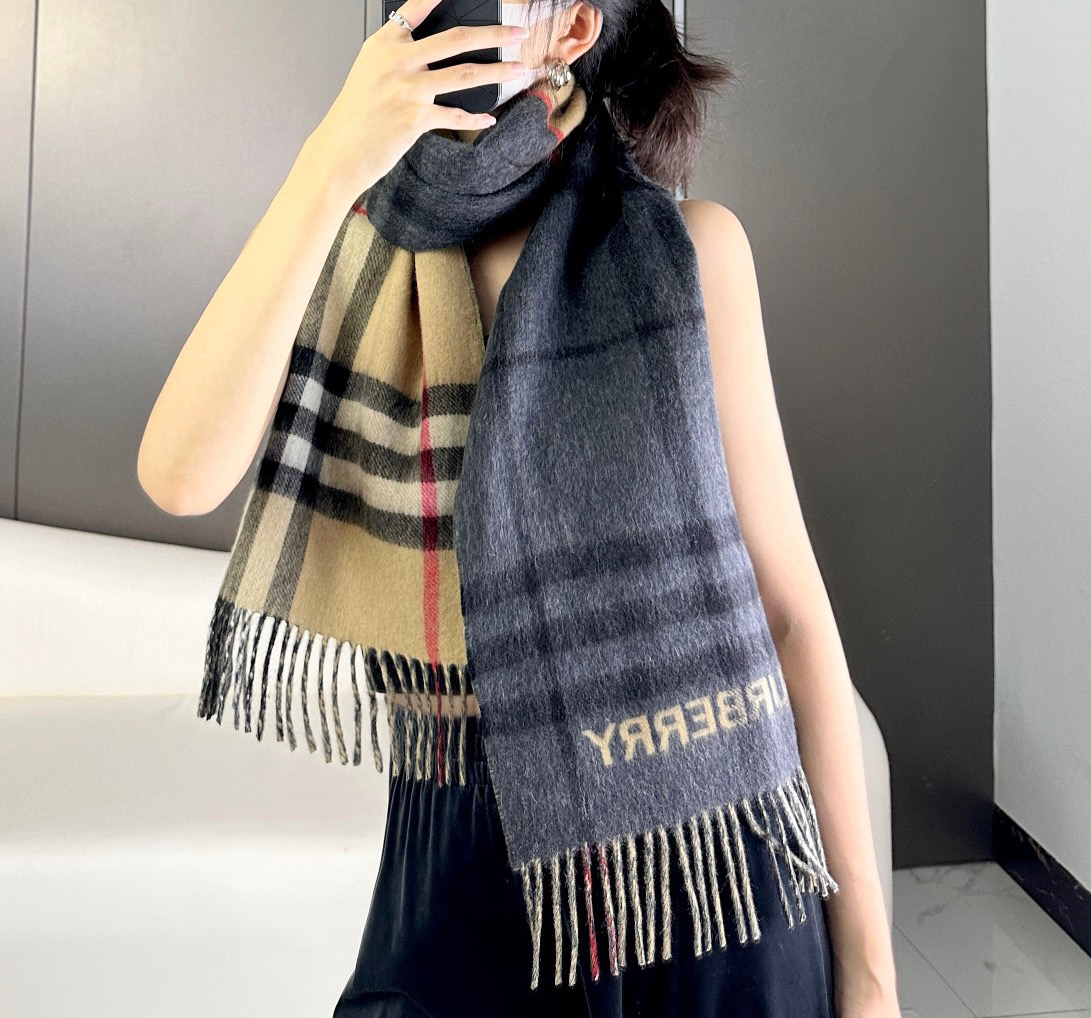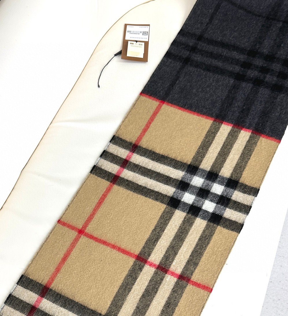 秋冬特惠💰240 上新!巴宝莉围巾《格纹拼色围巾 》驼色拼焦糖色