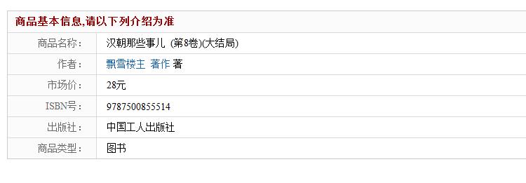 商品名称:汉朝那些事儿 (第8卷)(大结局)