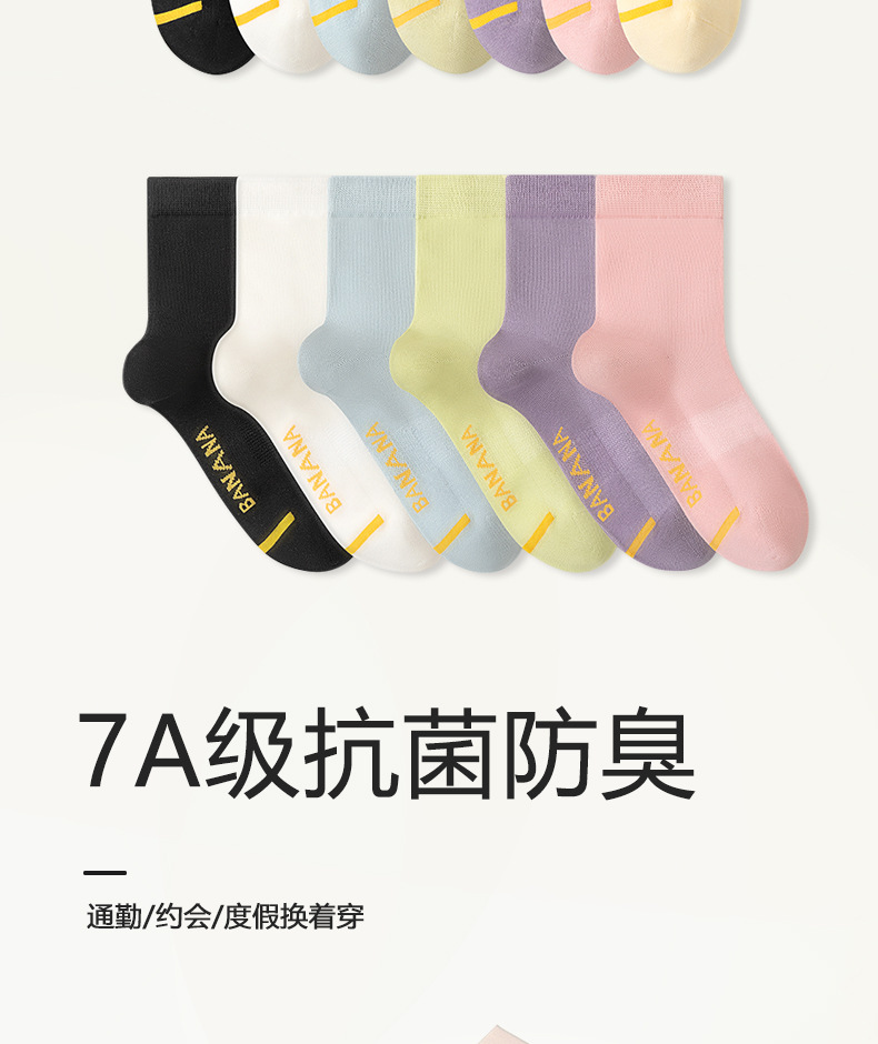 「7双礼盒装!新疆长绒棉」袜子女7A袜春秋季中筒吸汗短袜长袜棉配饰