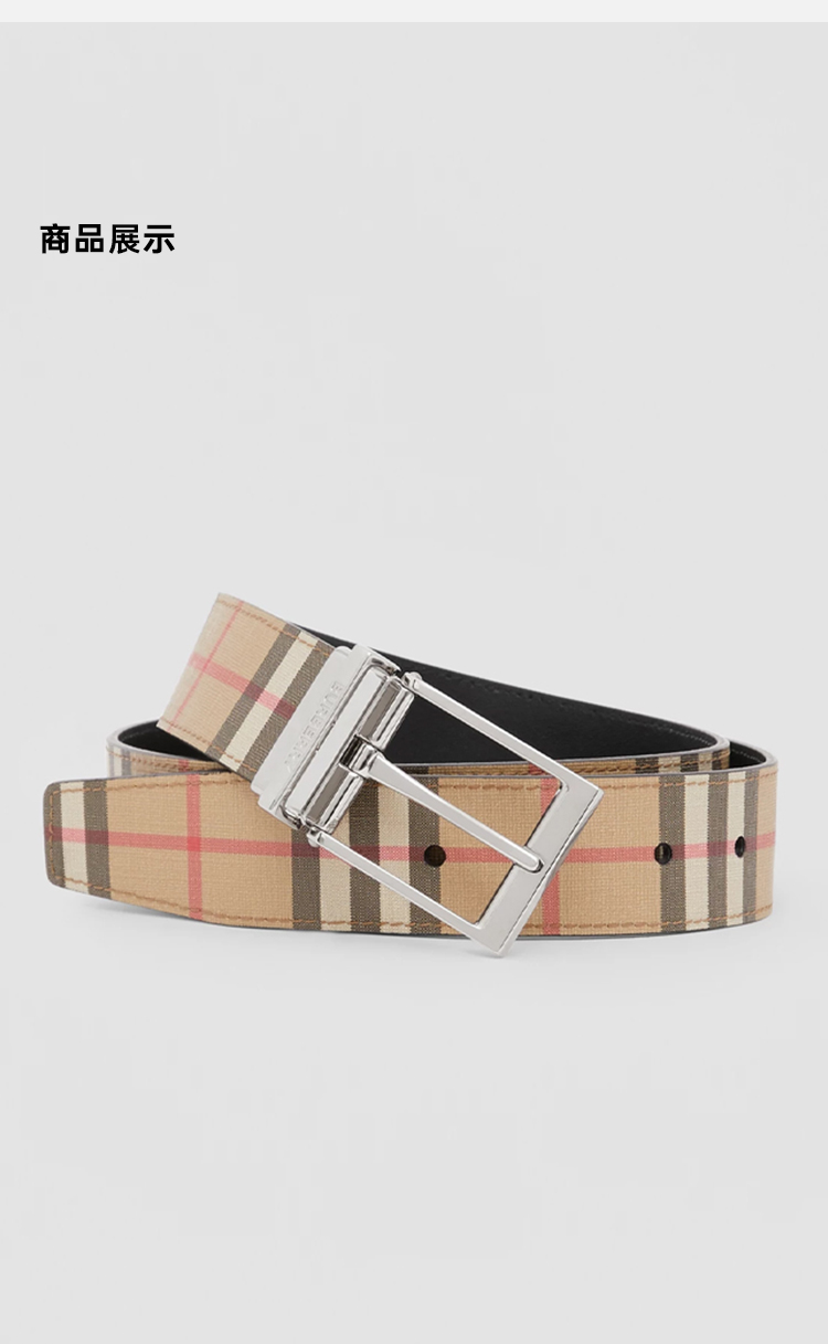【一】BURBERRY 巴宝莉 男士双面两用格纹拼皮革腰带 格子 8052781 A7026