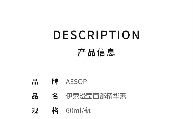 Aesop伊索 澄莹面部精华抗氧化补水保湿美白提亮60ML