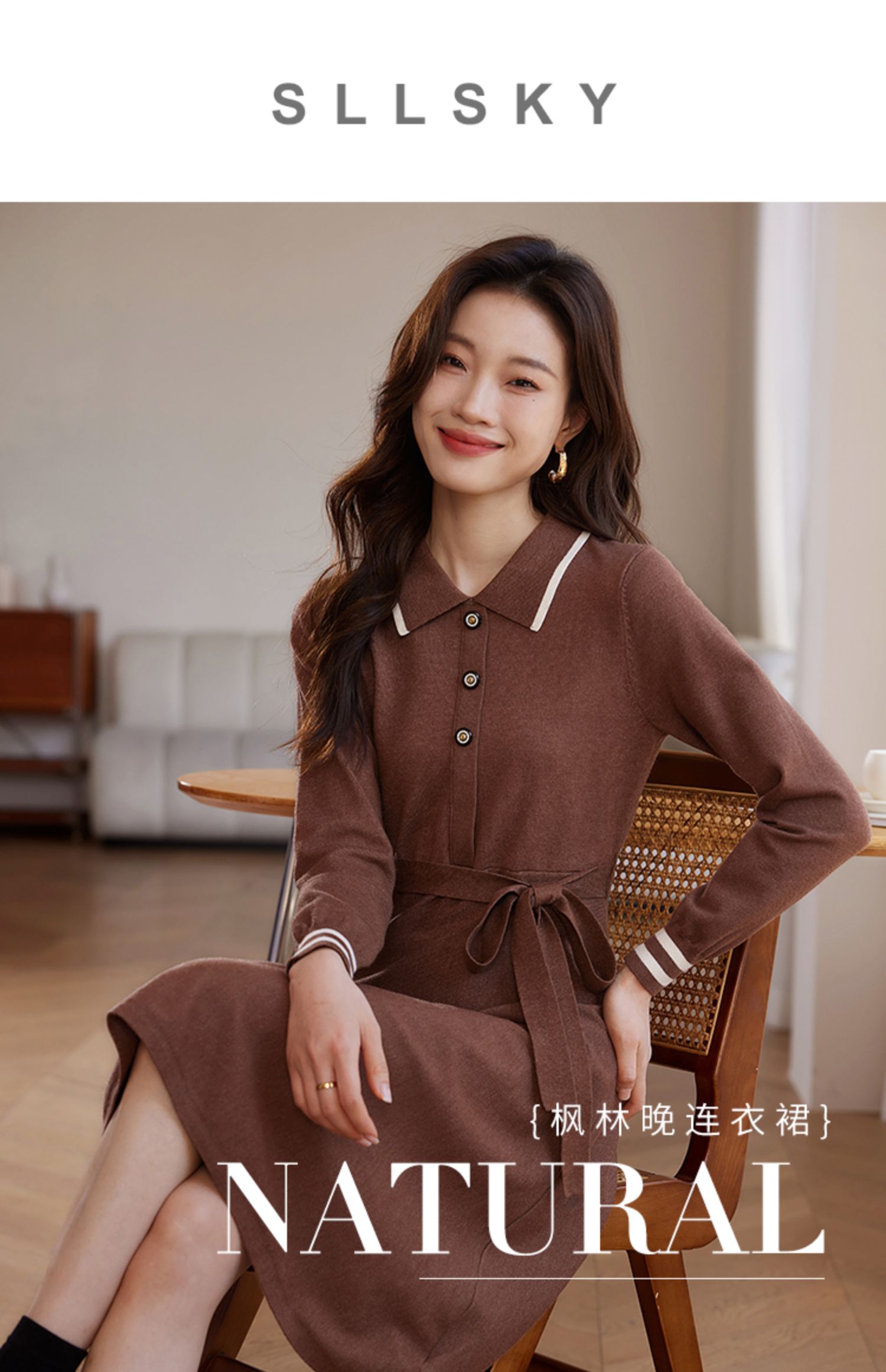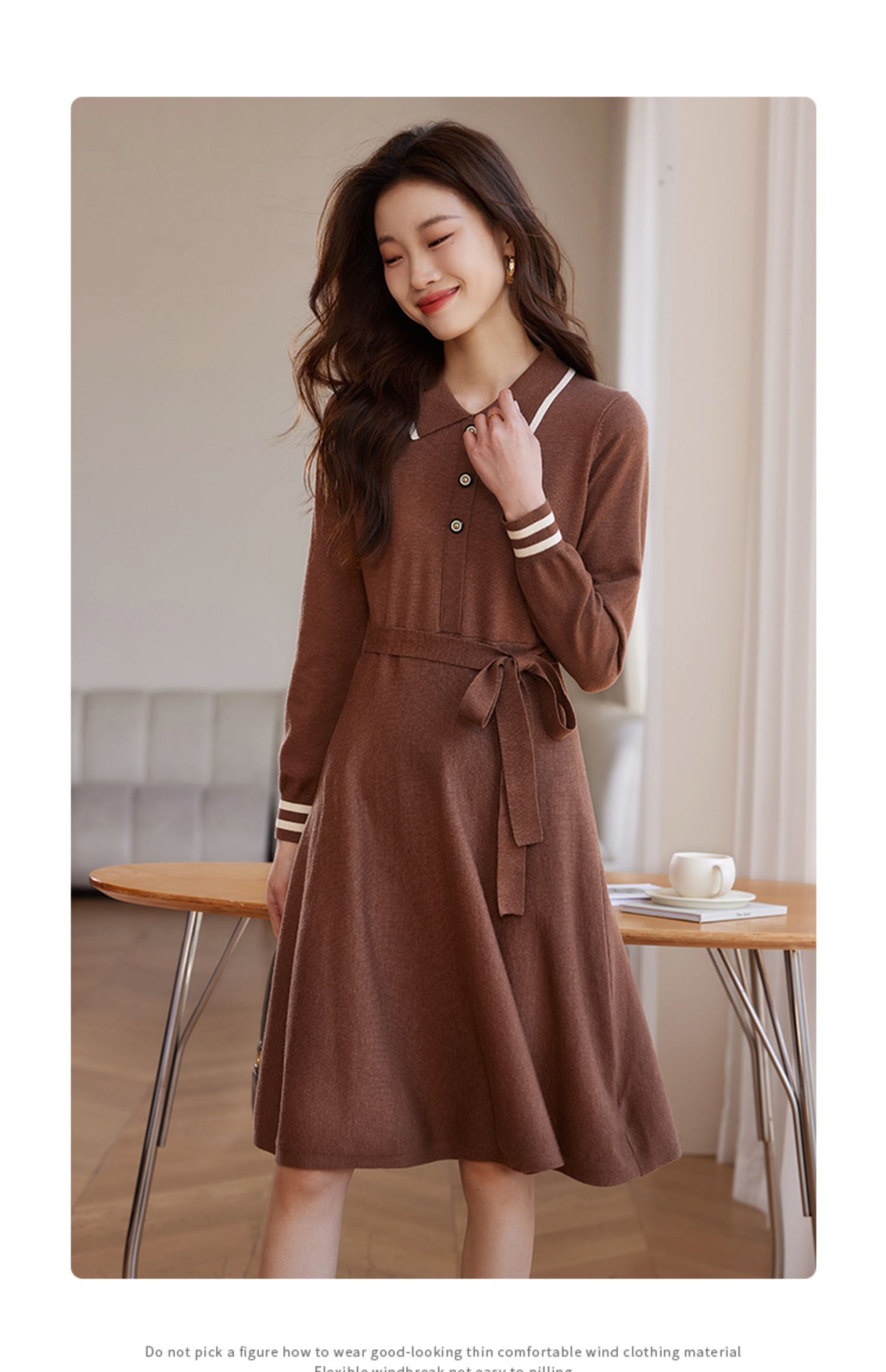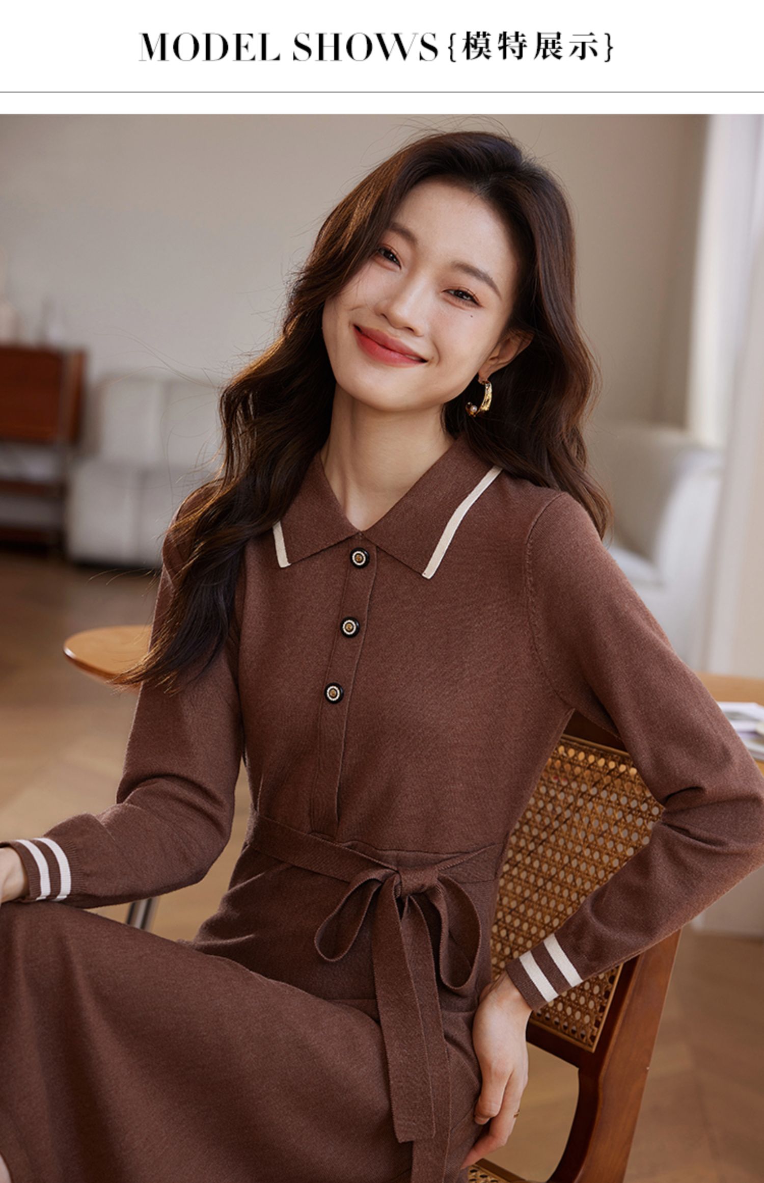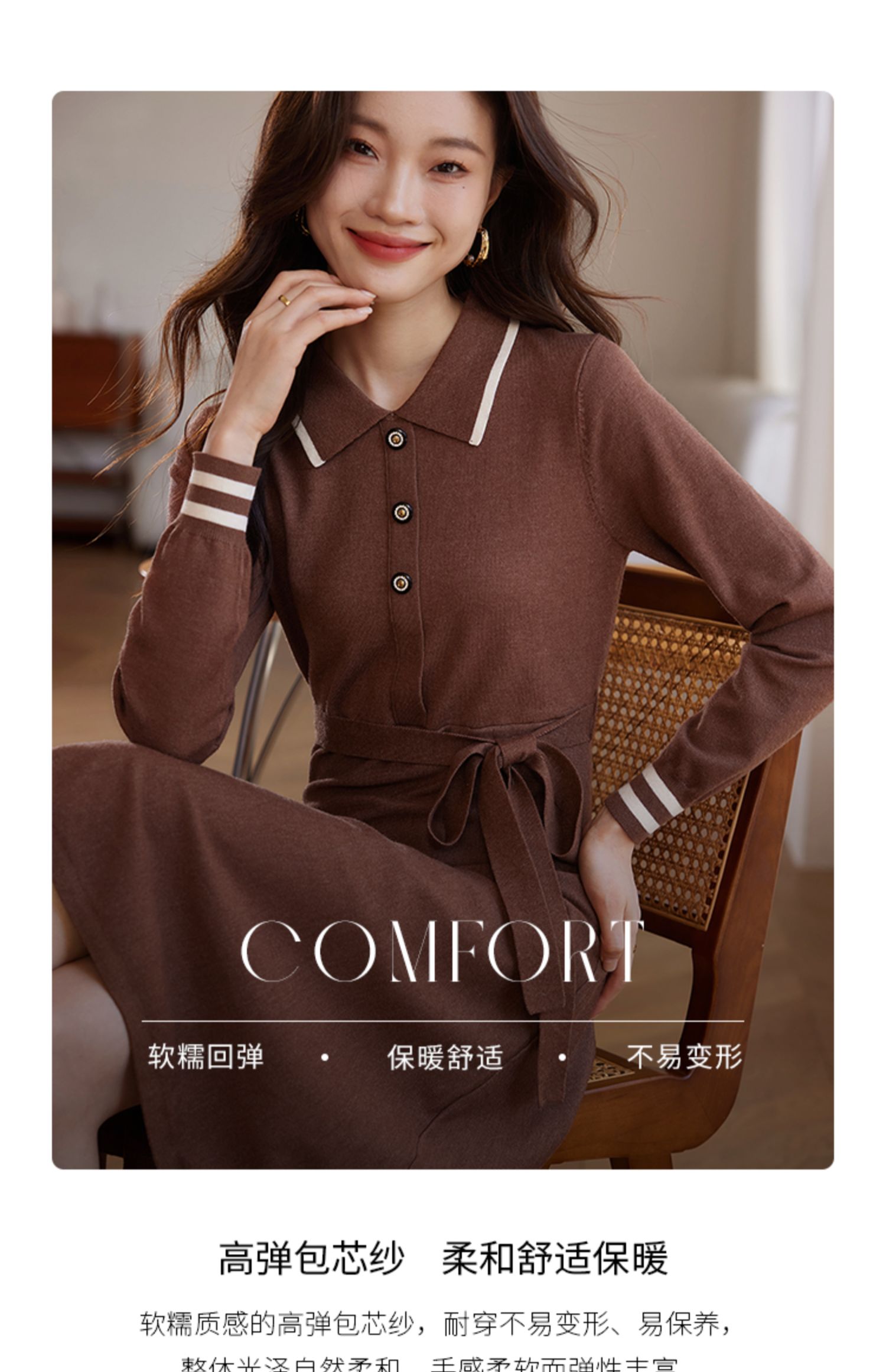 【专属特价】熙世界法式撞色polo领针织连衣裙女秋冬气质包芯纱收腰显瘦裙子