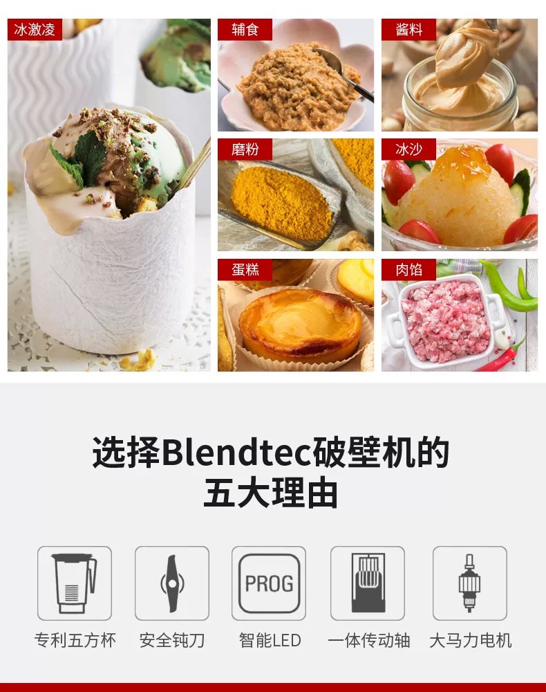 美国blendtec进口加热全自动家用智能多功能辅食机破壁料理机D650