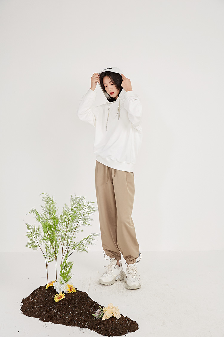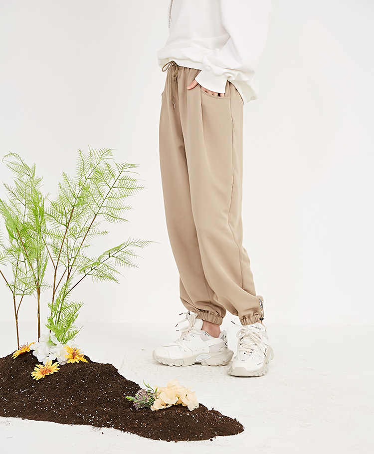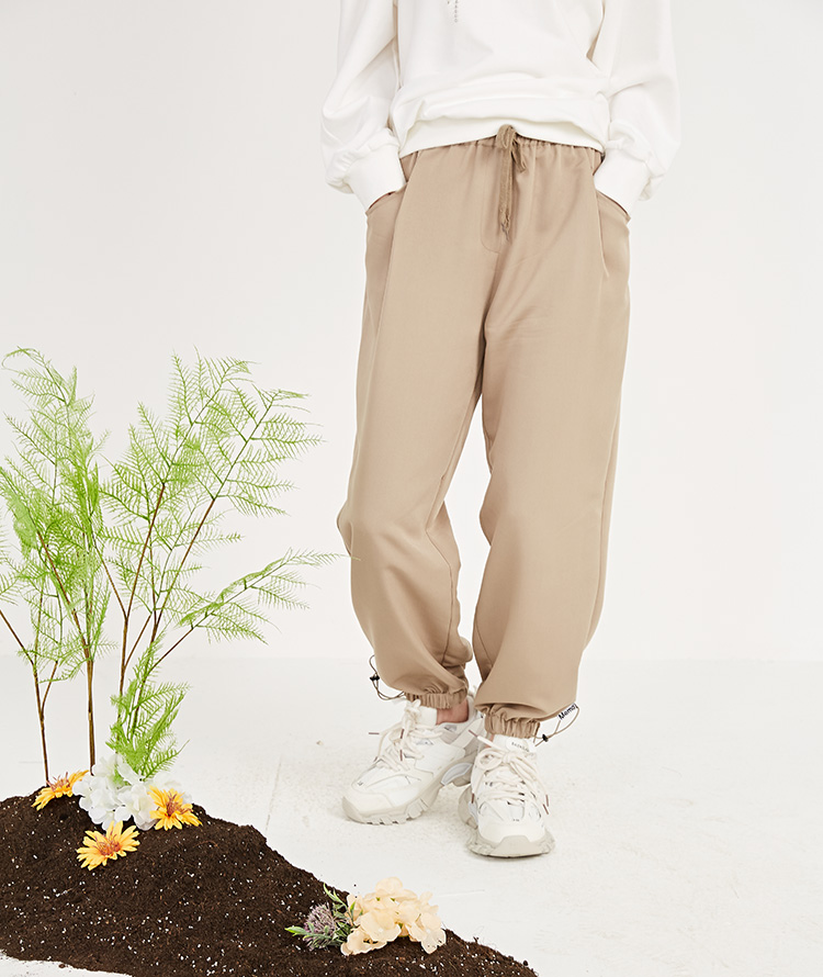 oldcolour欧珂夏季纯色抽绳弹力松紧腰休闲阔腿裤女P25073107
