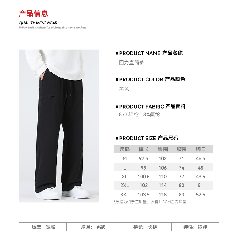回力糯米裤女秋冬季2025新款宽松垂感软糯黑色休闲直筒阔腿裤