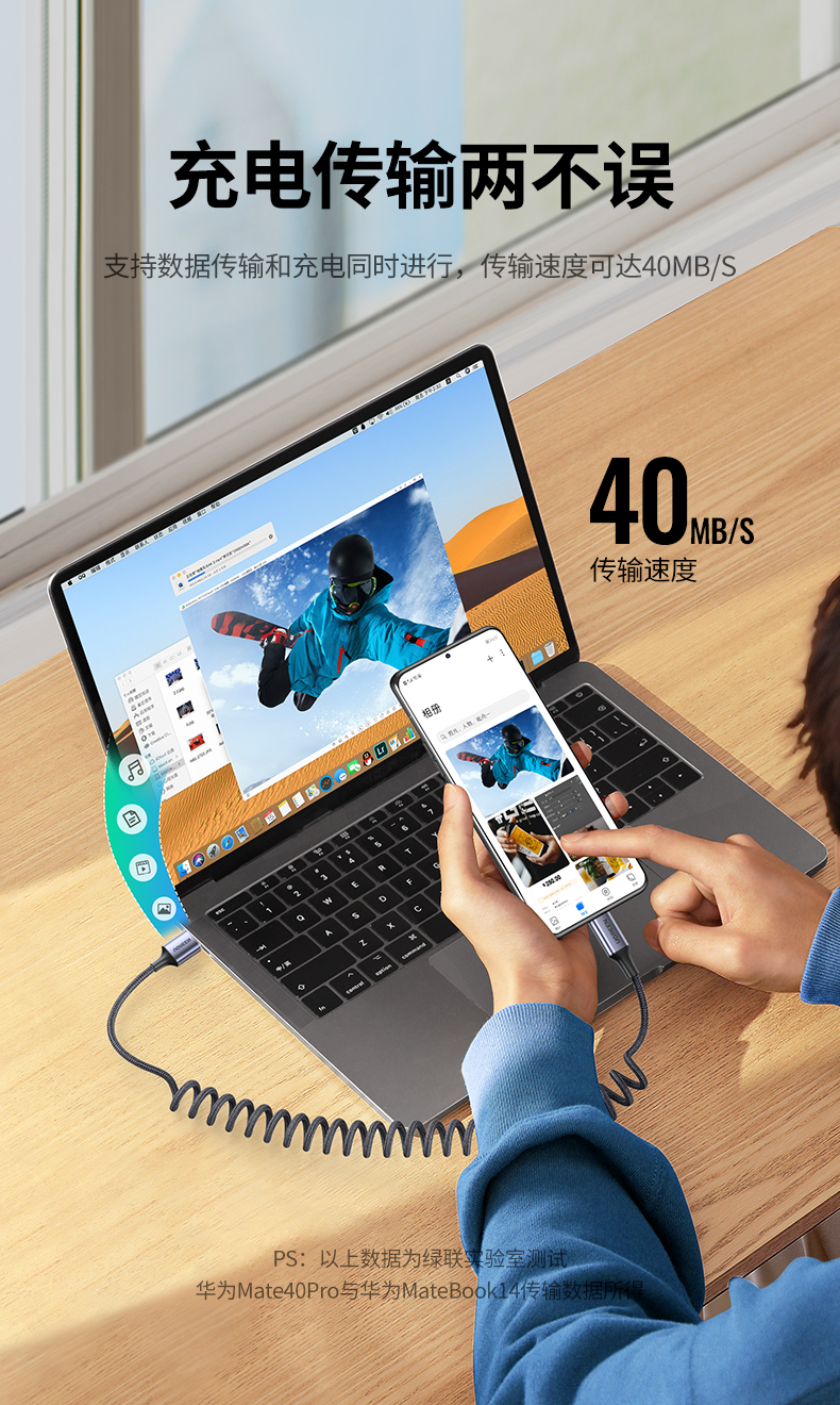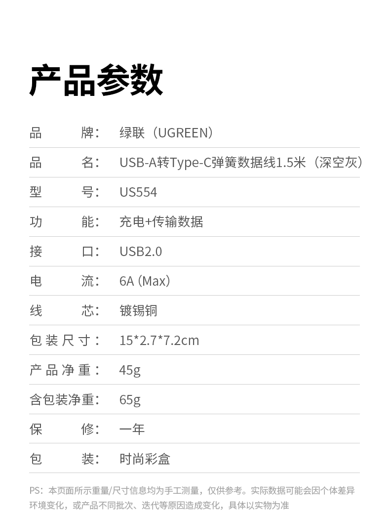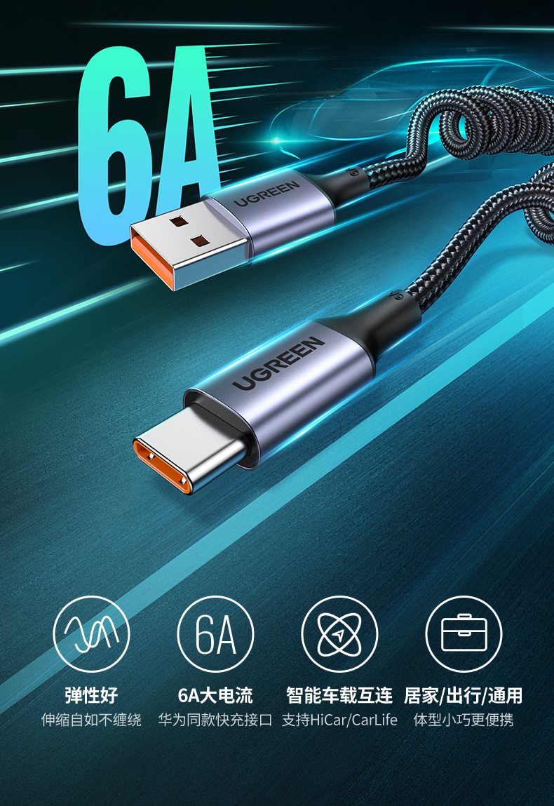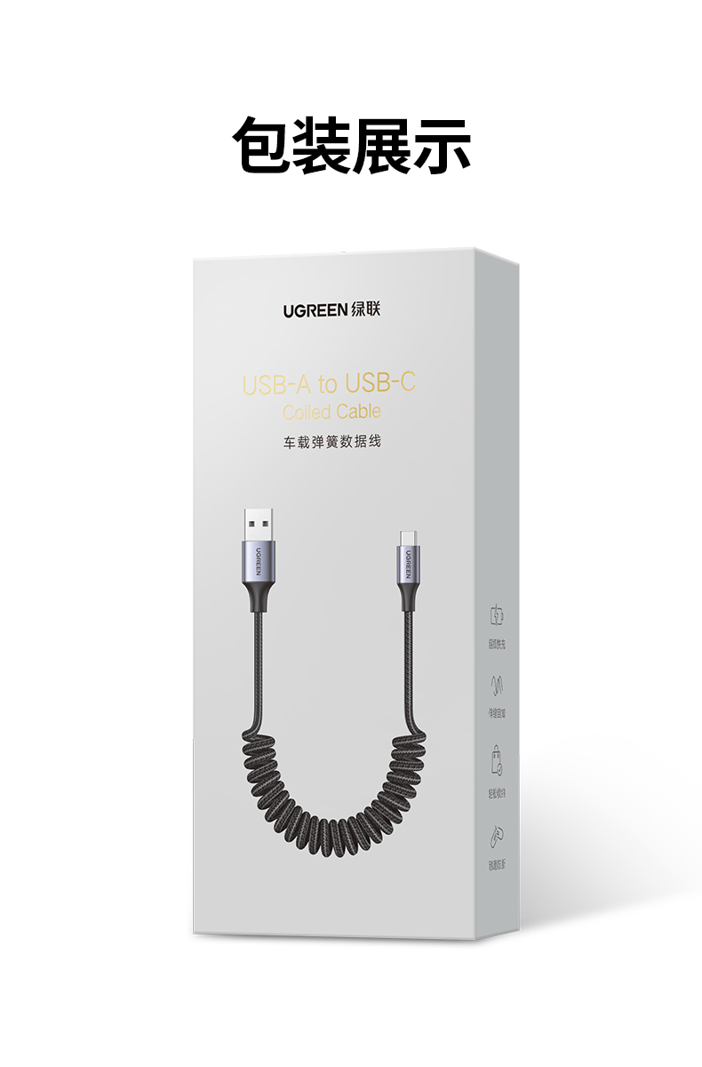 绿联USB-A转Type-C弹簧数据线90790