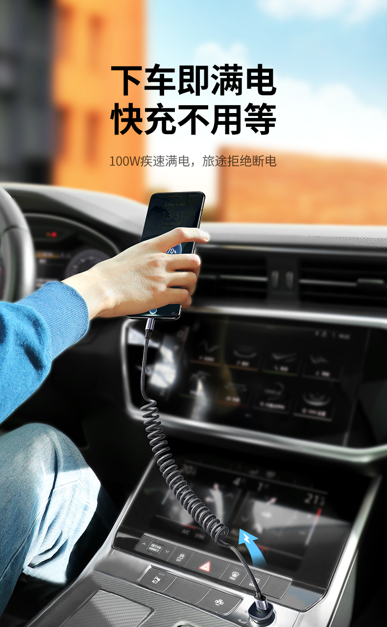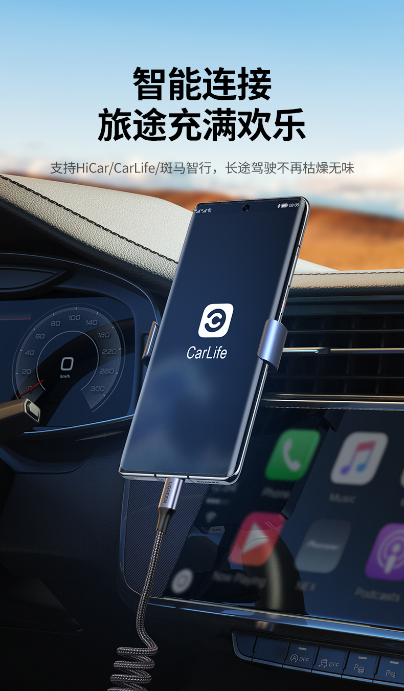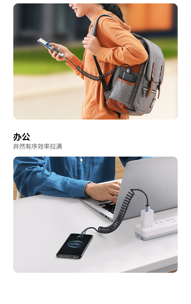 绿联USB-A转Type-C弹簧数据线90790