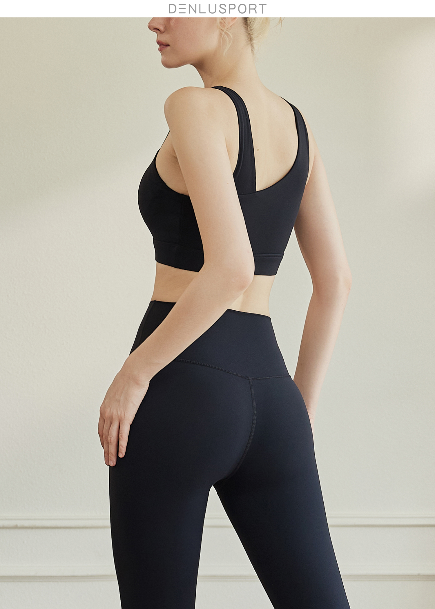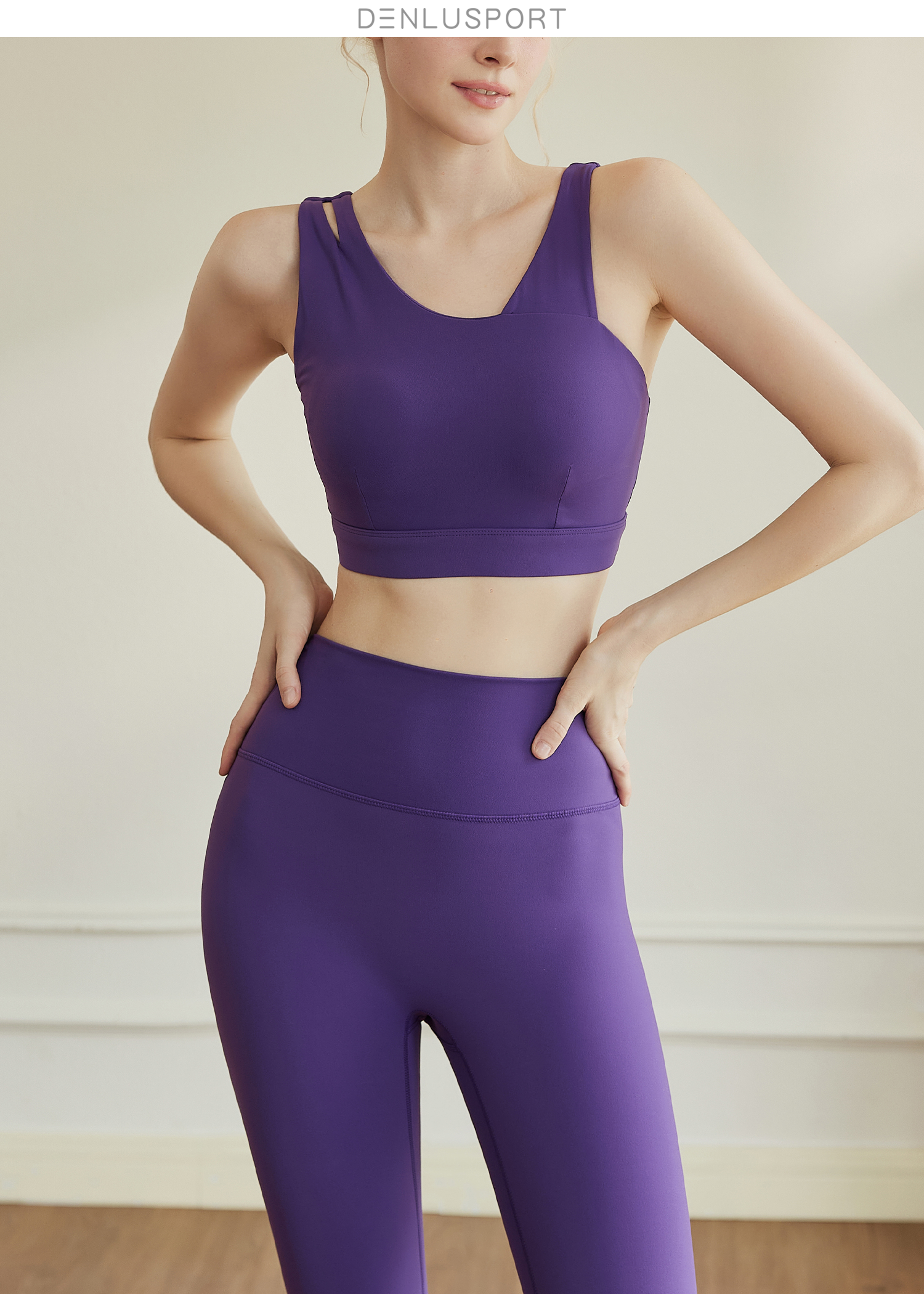 时尚斜肩一体杯运动美背瑜伽服套装裸感双磨毛瑜伽运动文胸/高腰紧身裤#DY66116/DK95081