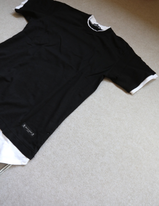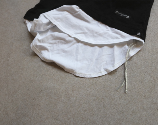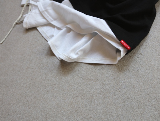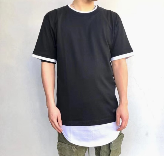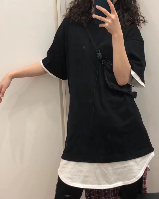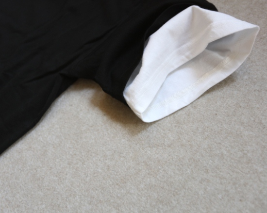 假两件样式 领口和袖口是双层布料 两层领都是弹力螺纹的 袖口平口
