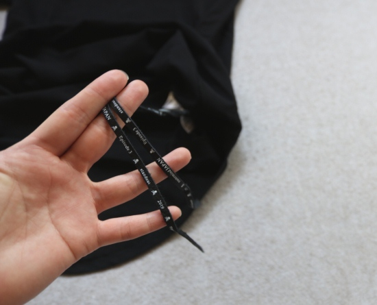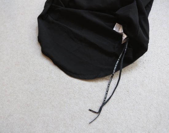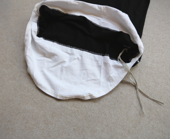 圆弧式下摆 是底边缝线拼接的 水标处 还散出来两根小皮绳