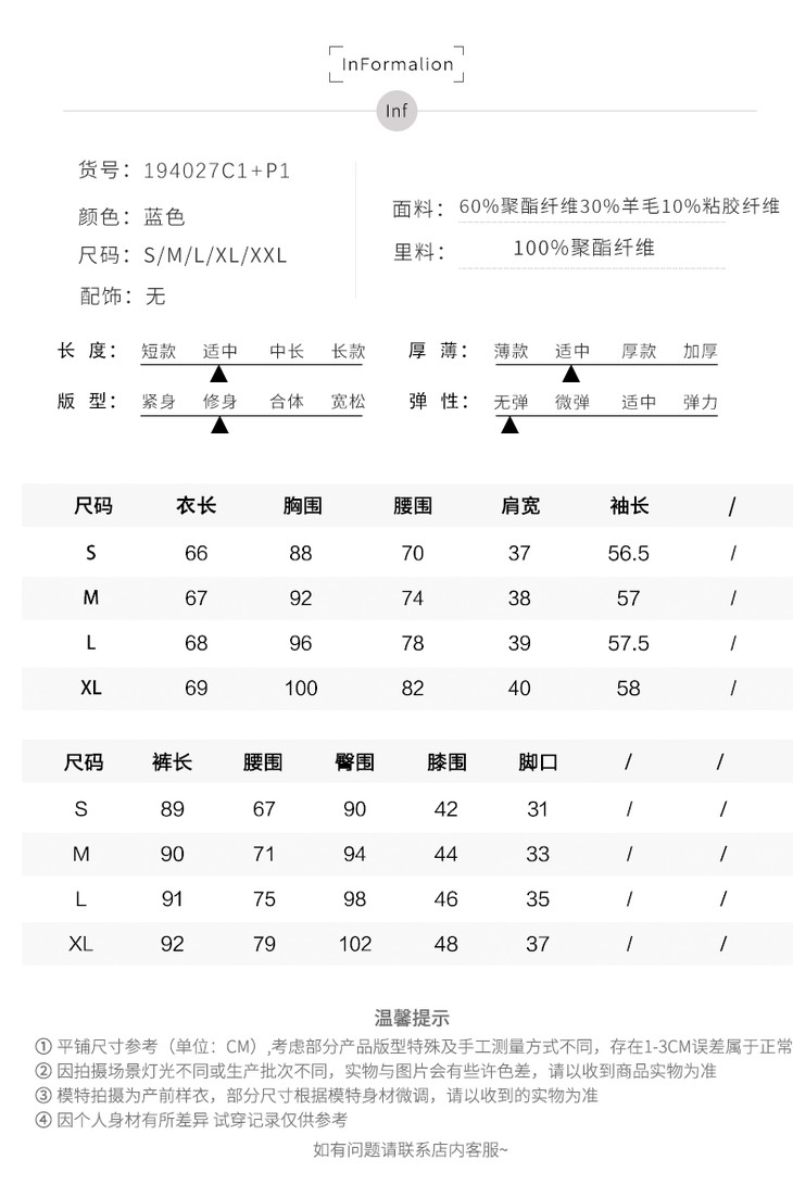 IWY/蓝色长袖西装长裤套装194027C1+P1