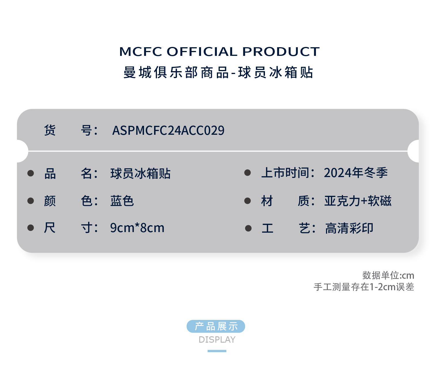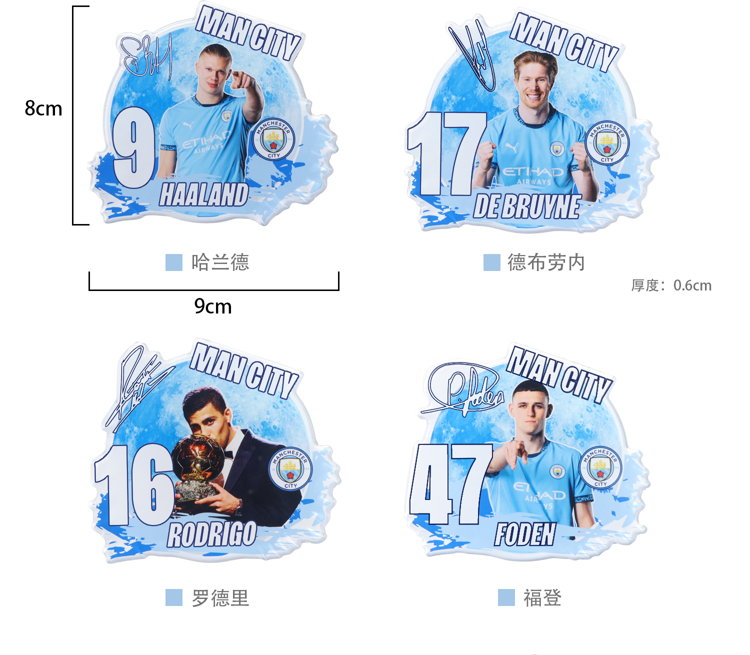 【官方正版】曼城俱乐部 | 球员冰箱贴球迷磁吸装饰家居礼物