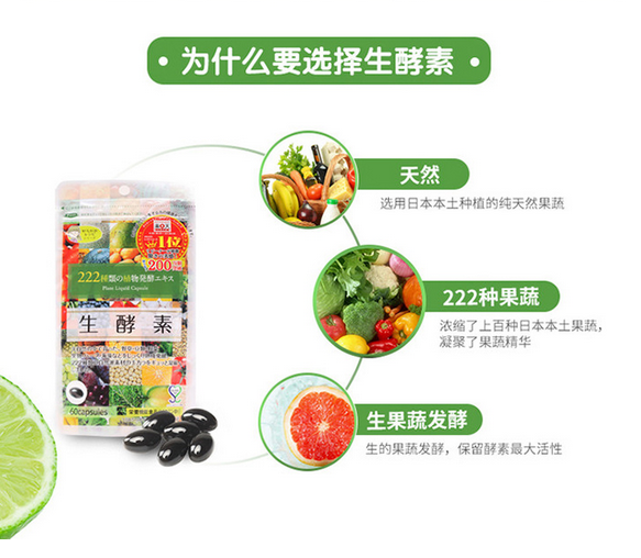 【现货】生酵素222种水果果蔬酵素 60粒