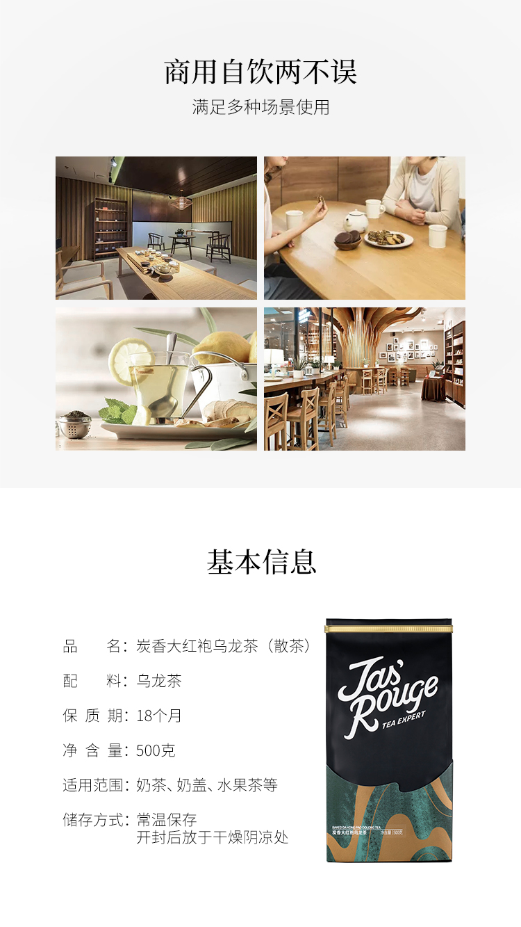 C4 【Jasrouge茶】炭香大红袍乌龙茶500g 散茶袋装 茗茶 原片茶茶叶 饮品店奶茶店专用原料底料
