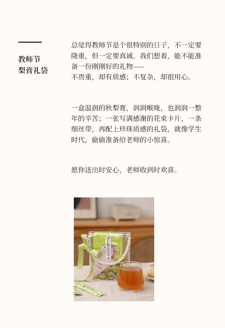 喜善花房教师节伴手礼秋梨膏192g/盒+贺卡+丝带+珍珠礼品袋