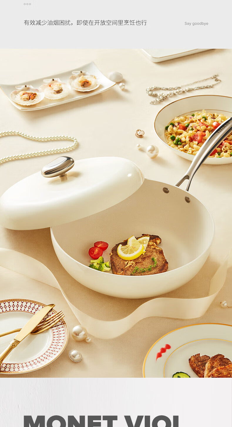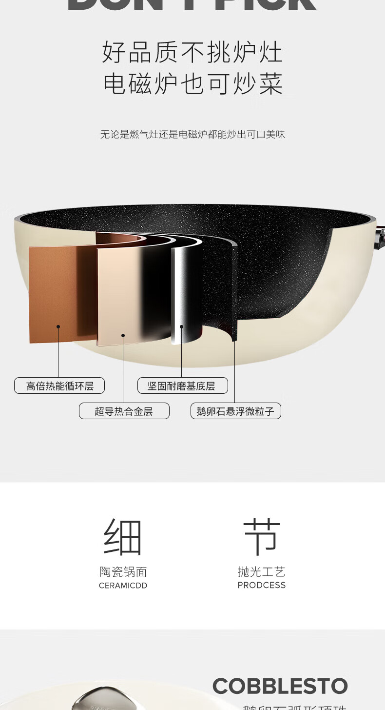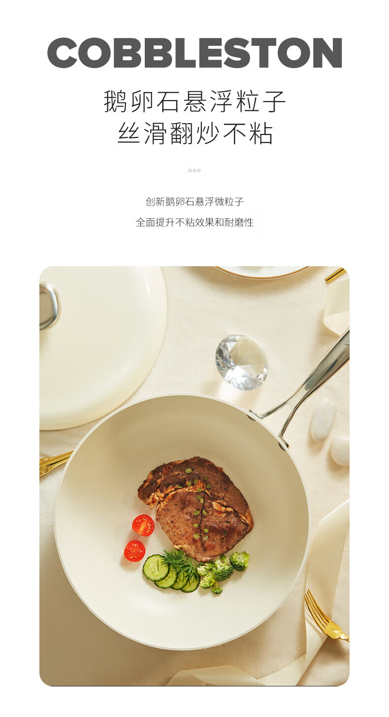 VELOSAN温仑山鹅卵石不粘锅炒锅麦饭石色铁锅炒菜锅燃气电磁炉炒锅不粘锅【伊藤优选302401】