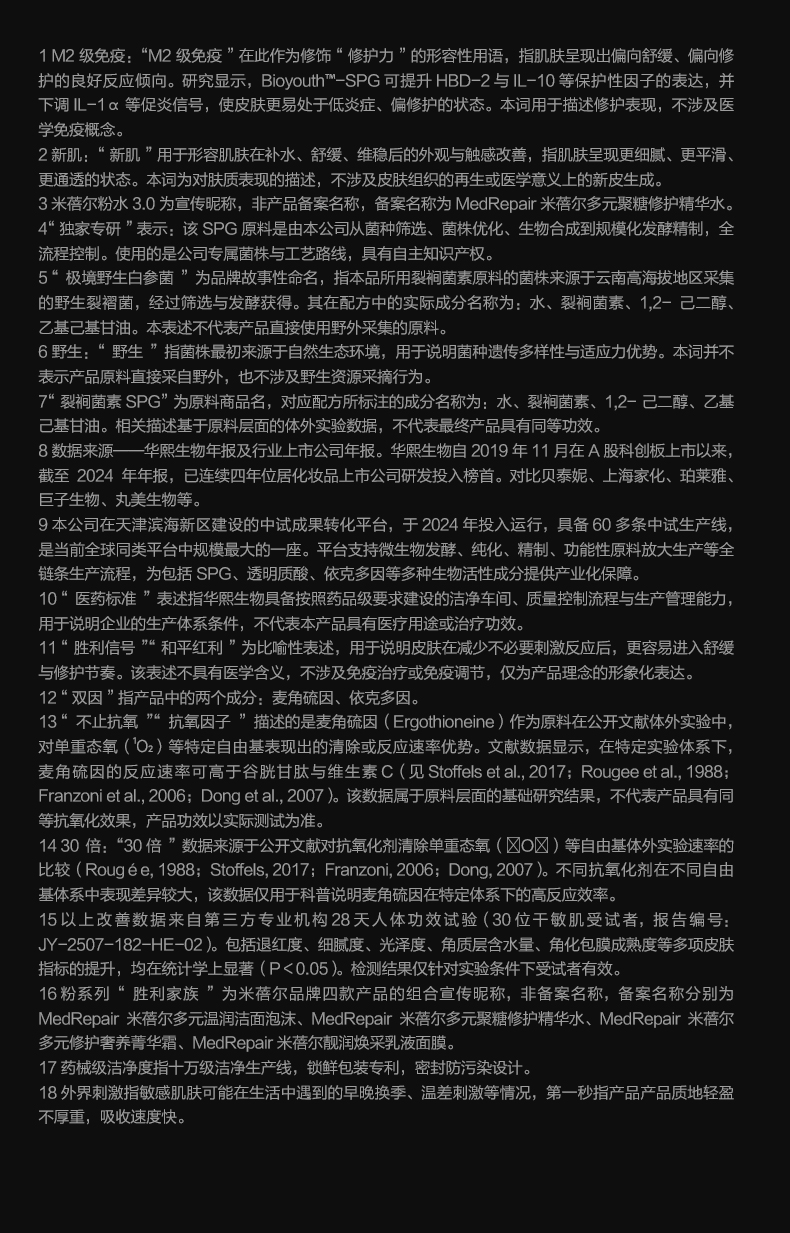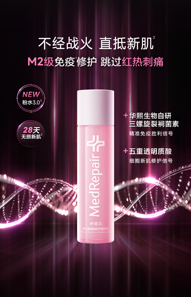 - 华熙生物集团旗下——米蓓尔MEDREPAIR 品牌以【调控神经免疫 修护受损肌肤】为核心理念,通过【神经免疫根源修敏】技术,源头进行受损信号调控,让敏感不再反复,重塑健康强韧肌肤。