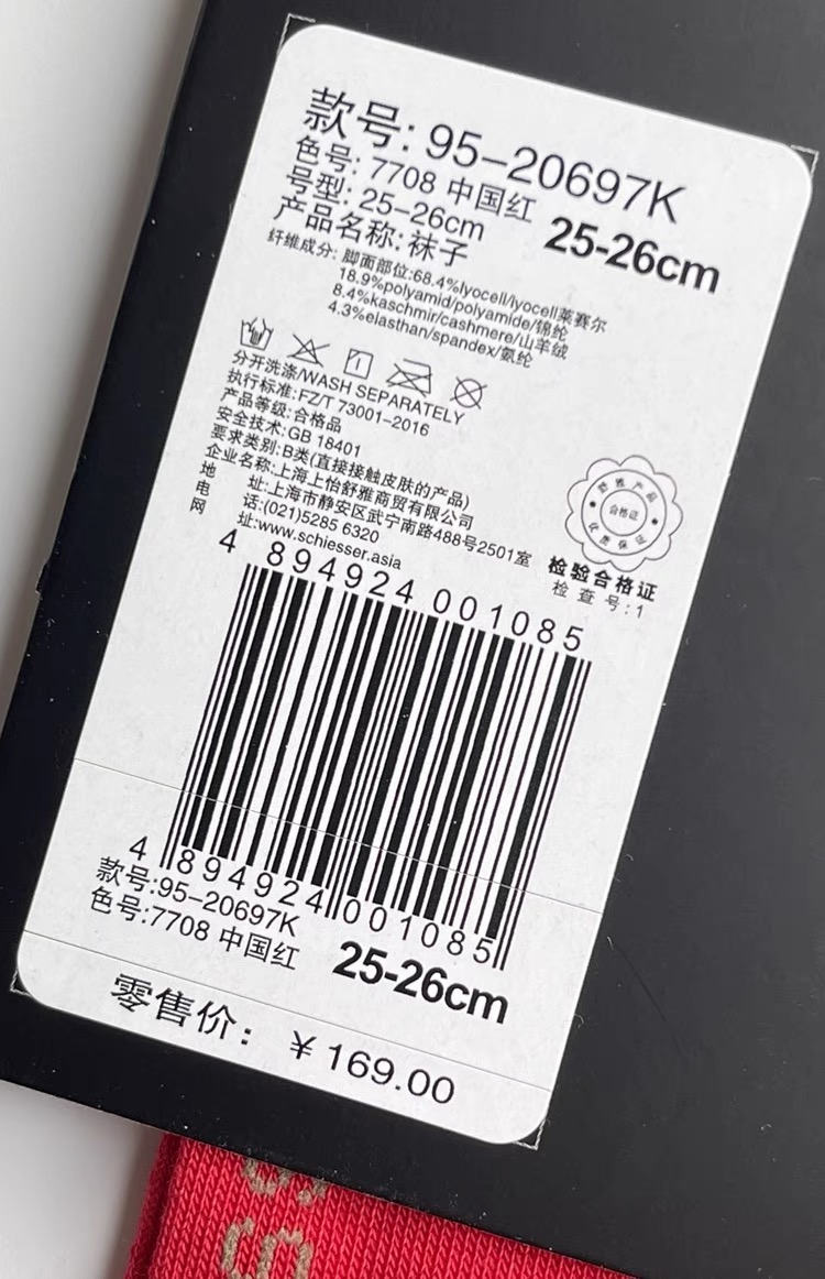 秋冬新款 德国舒雅铂雅男士中筒袜 绅士袜子 红色纯色95/20697K