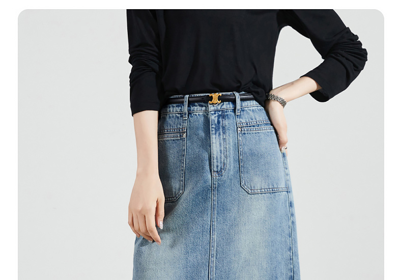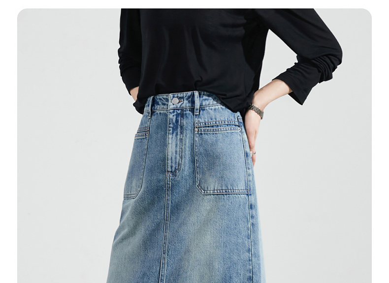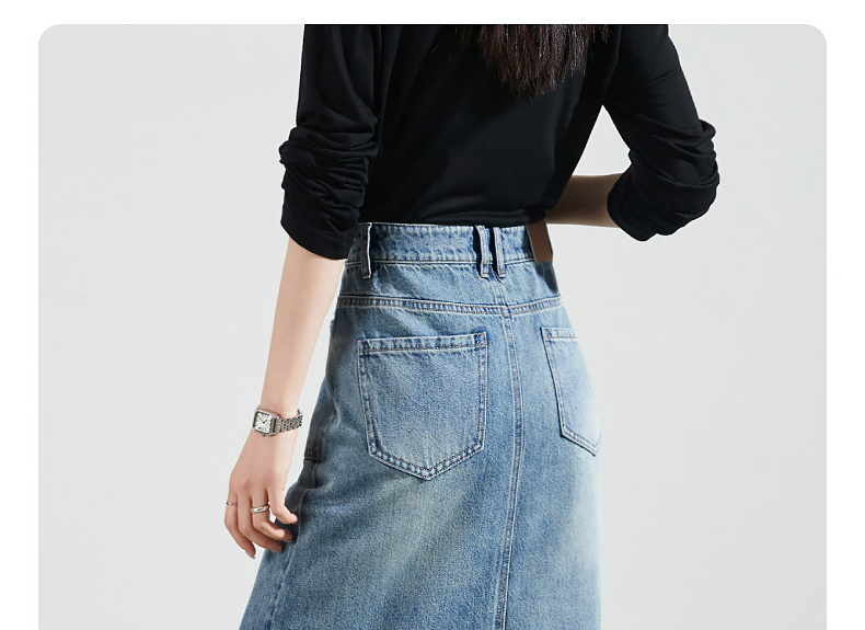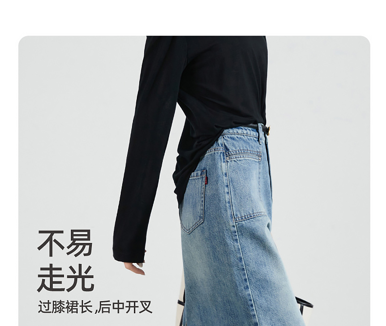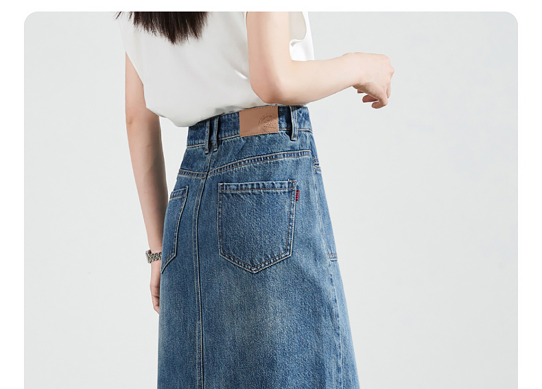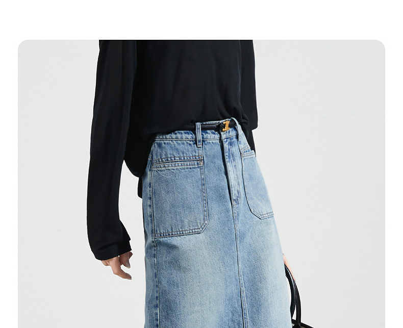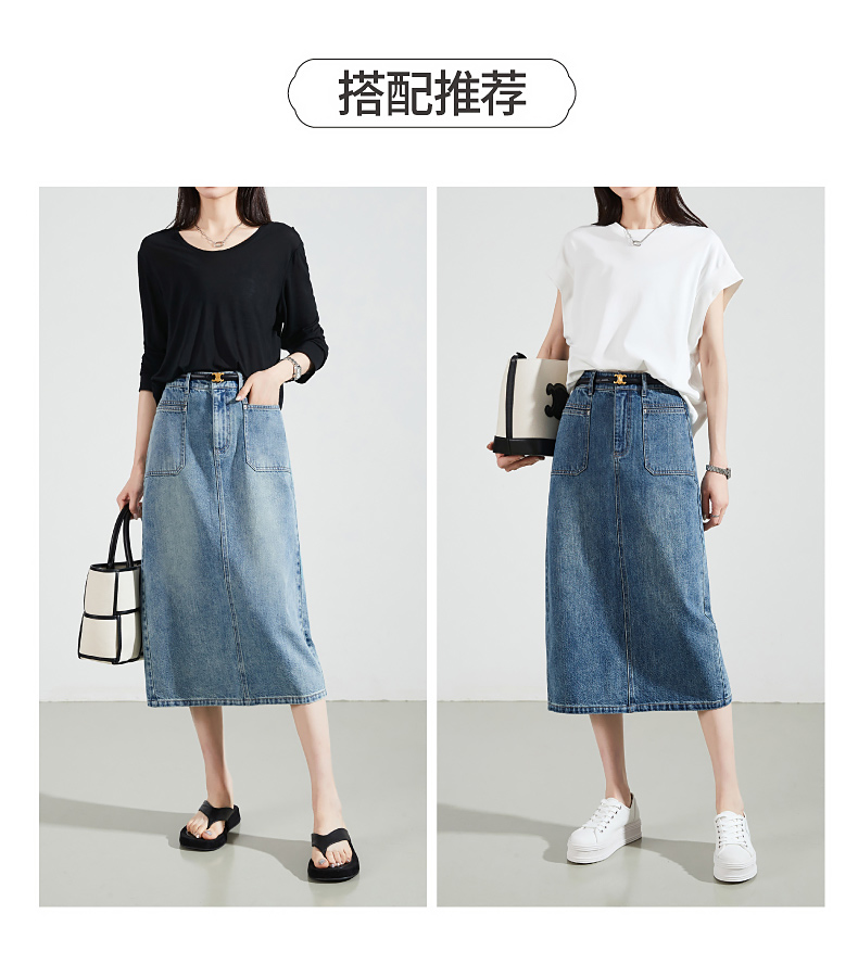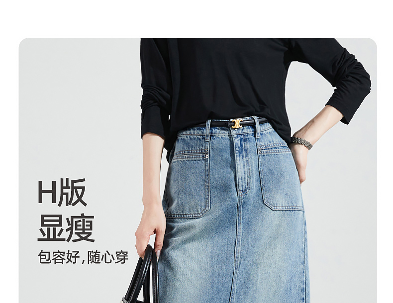 逸阳大口袋后开叉牛仔半裙女2024年夏季新款H版显高显瘦裙子1099