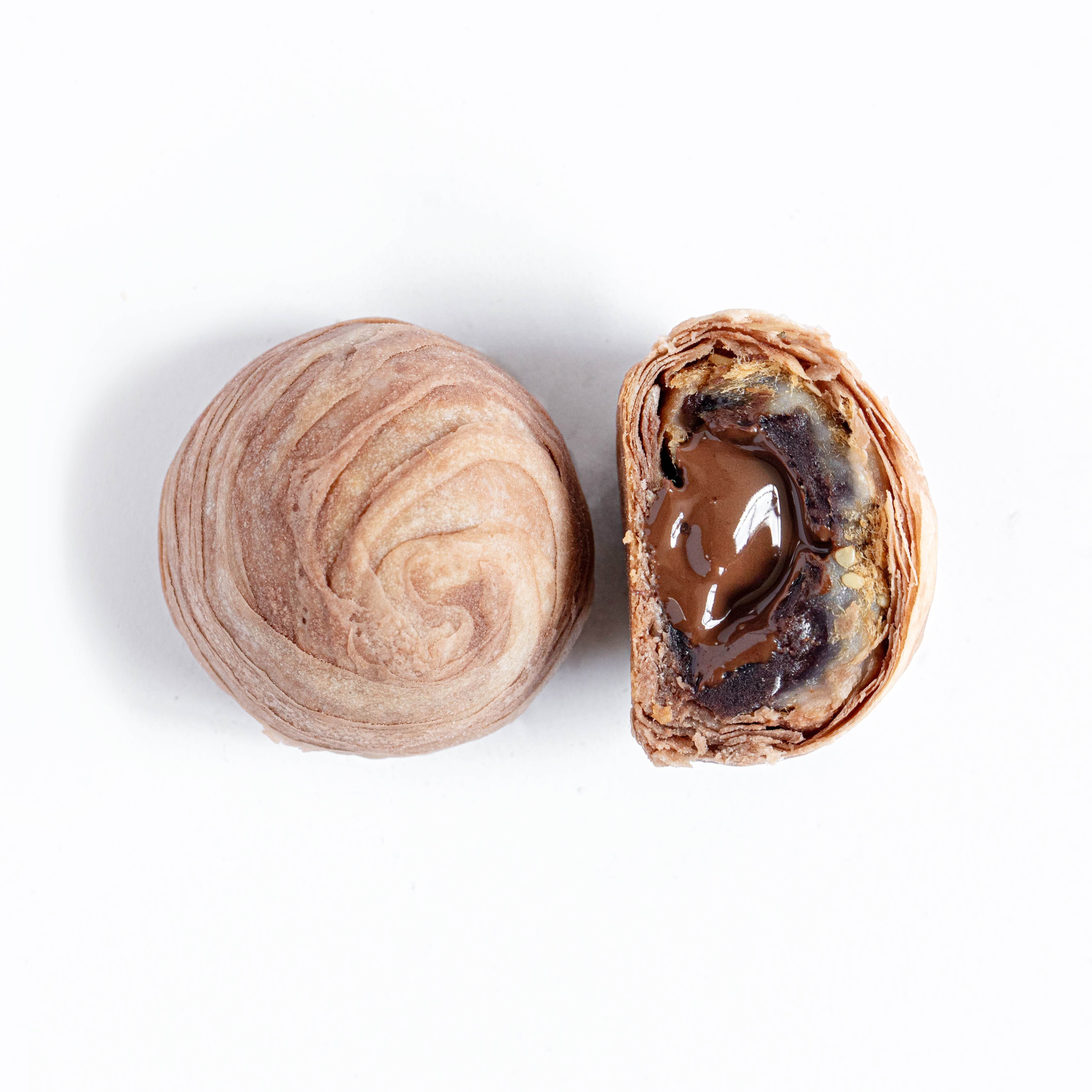 巧克力星人狂喜,🍫🍫微苦醇厚的可可酥皮包裹着丝滑巧克力内馅,搭配咸香肉松,甜中带咸,浓郁不腻,每一口都像在吃 “中式巧克力派”,层次超惊艳