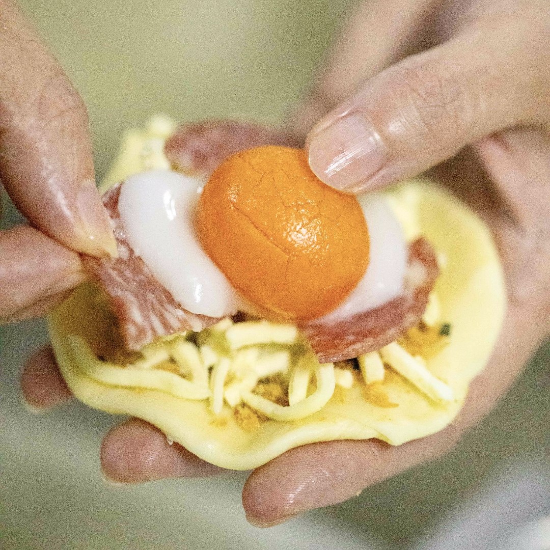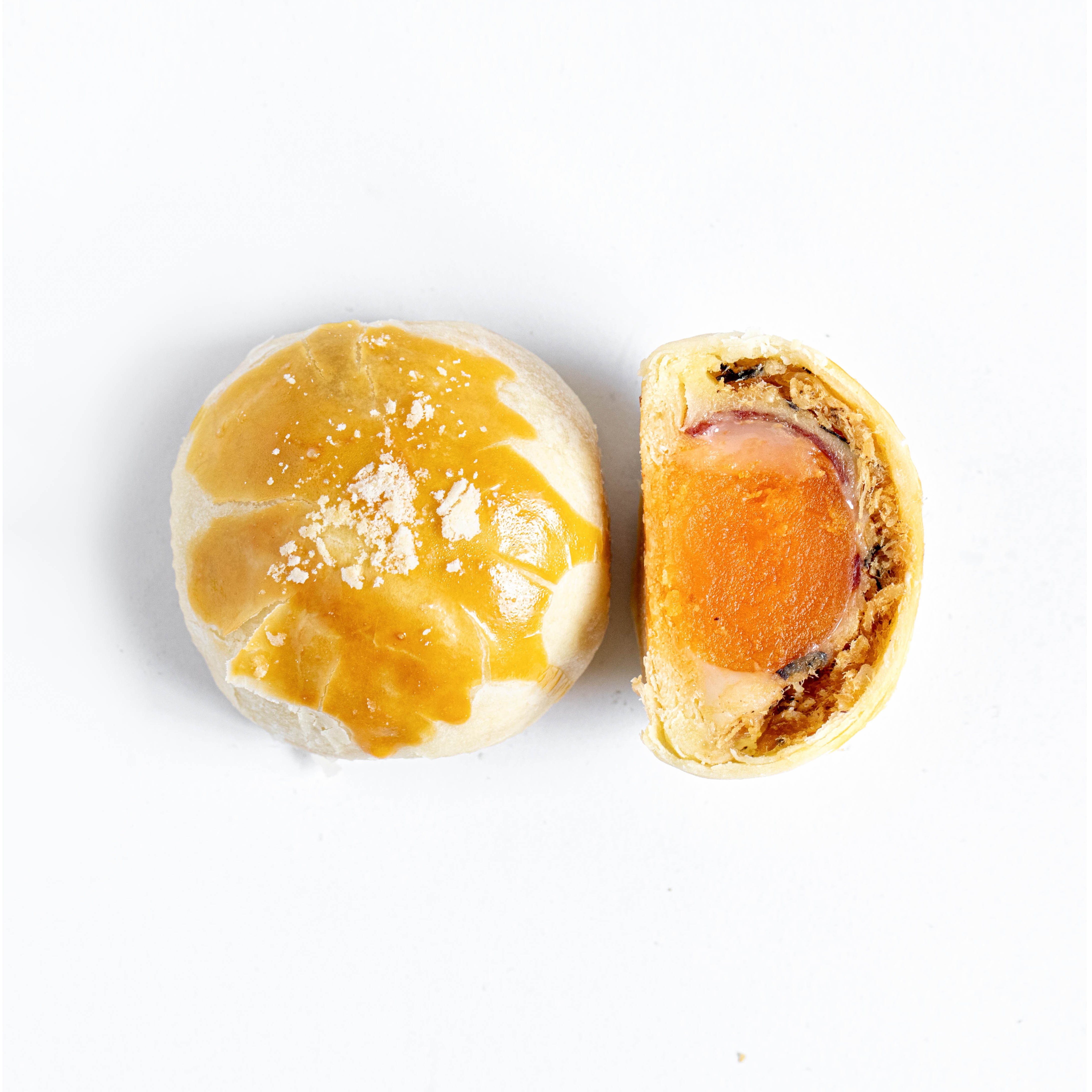 千层酥皮、鲜香肉松、绵密内馅、Q 弹麻薯、流心蛋黄。 一口下去,多重口感在舌尖爆炸,吃完一颗刚好满足,完全不腻