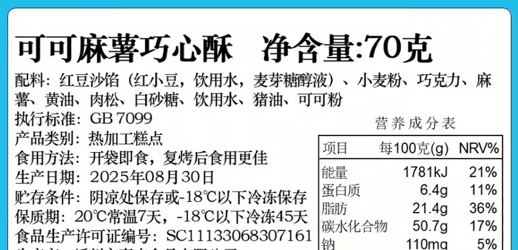 浓郁款:可可巧克力肉松酥