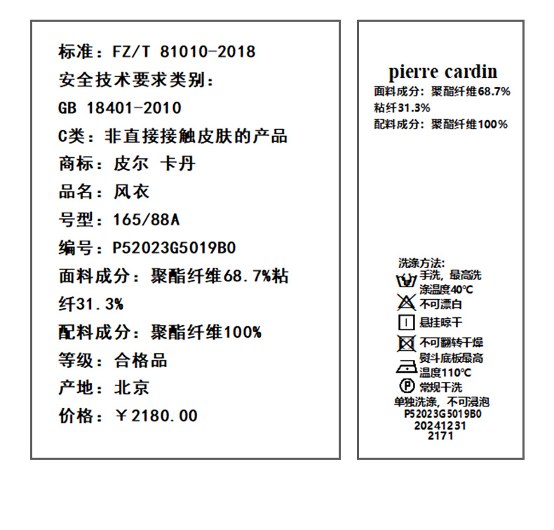 皮尔卡丹女装风衣P52023G5019B0