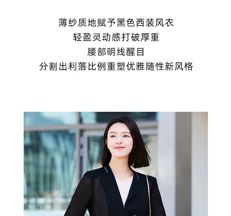 成熟、稳重、高贵典雅、大方得体 融合东方文化的含蓄和法国的浪漫 将创意的艺术性与消费需求相结合 为自信女性塑造高品质场合服装