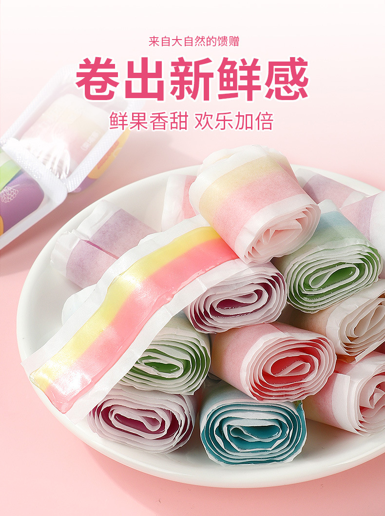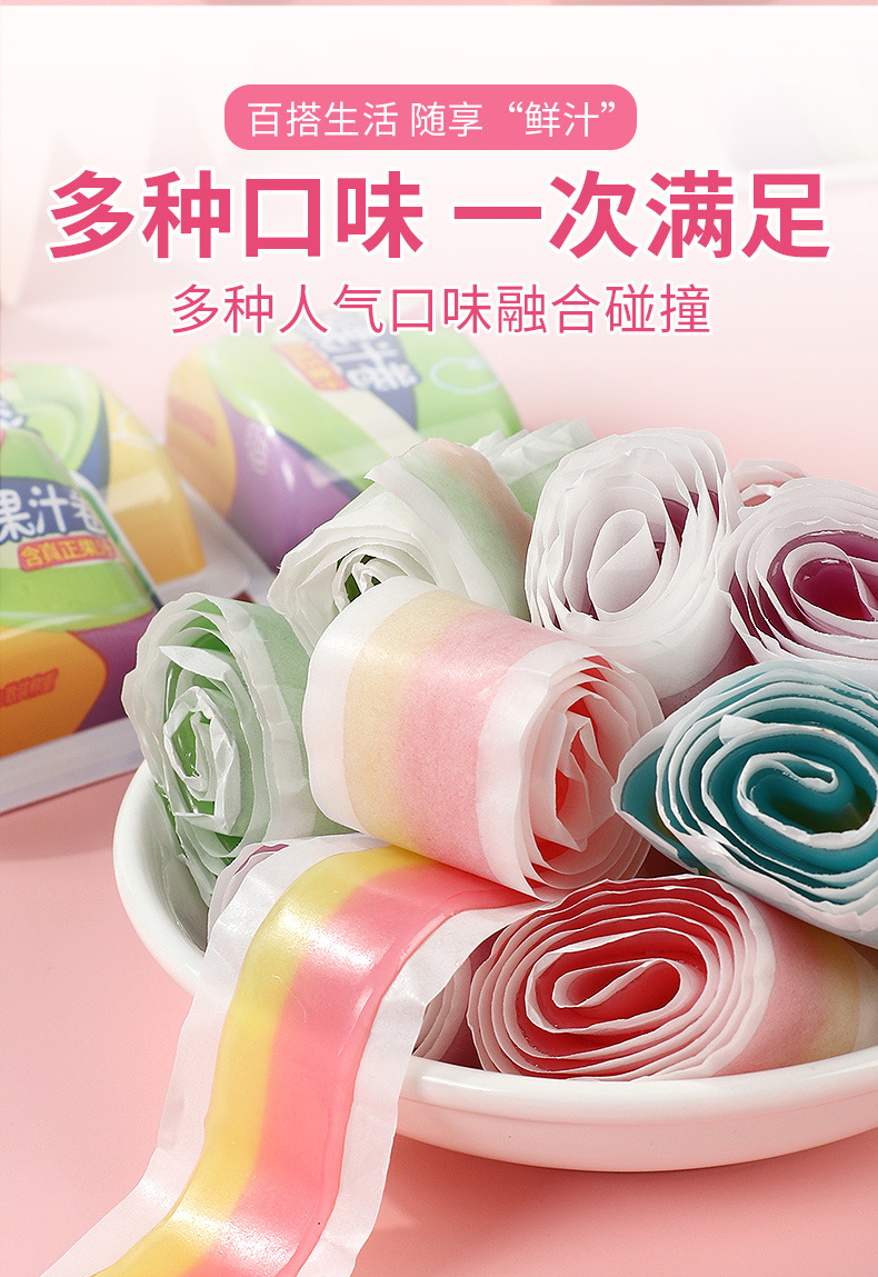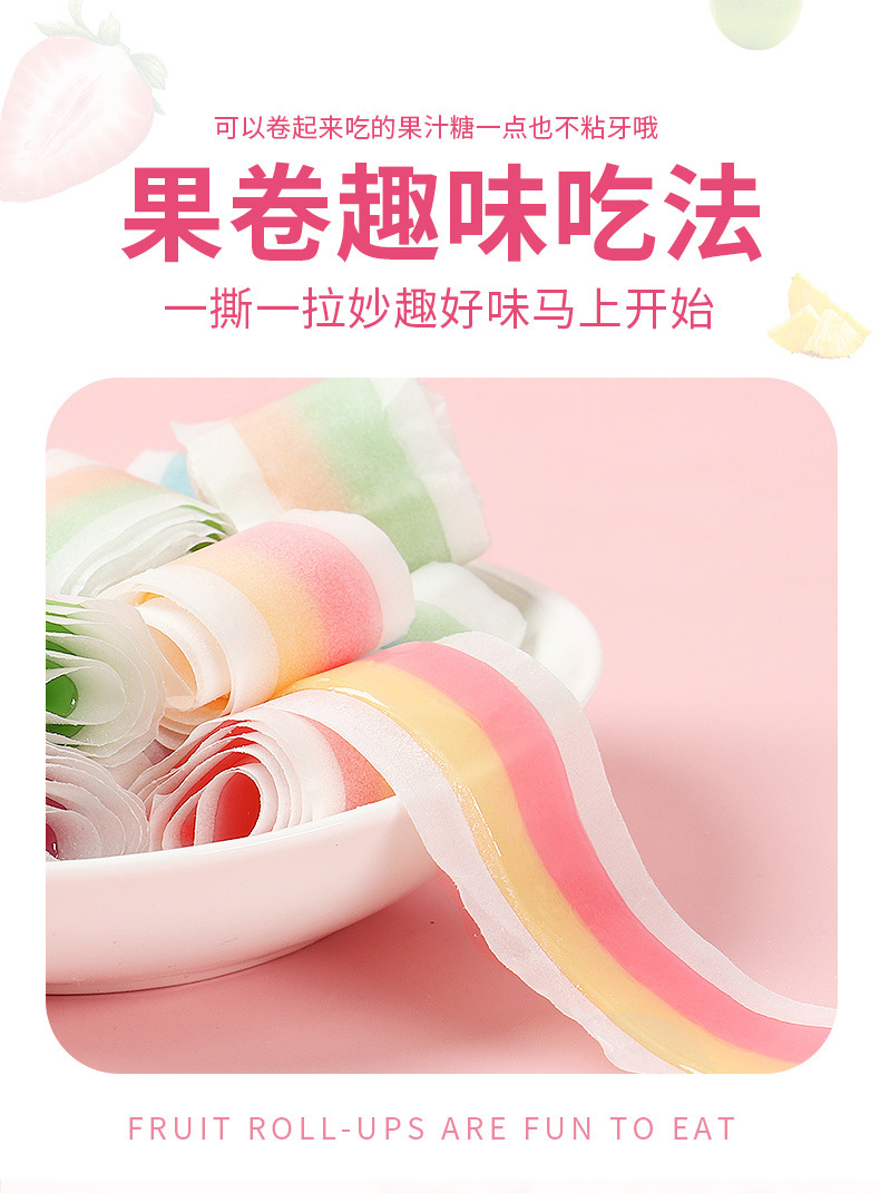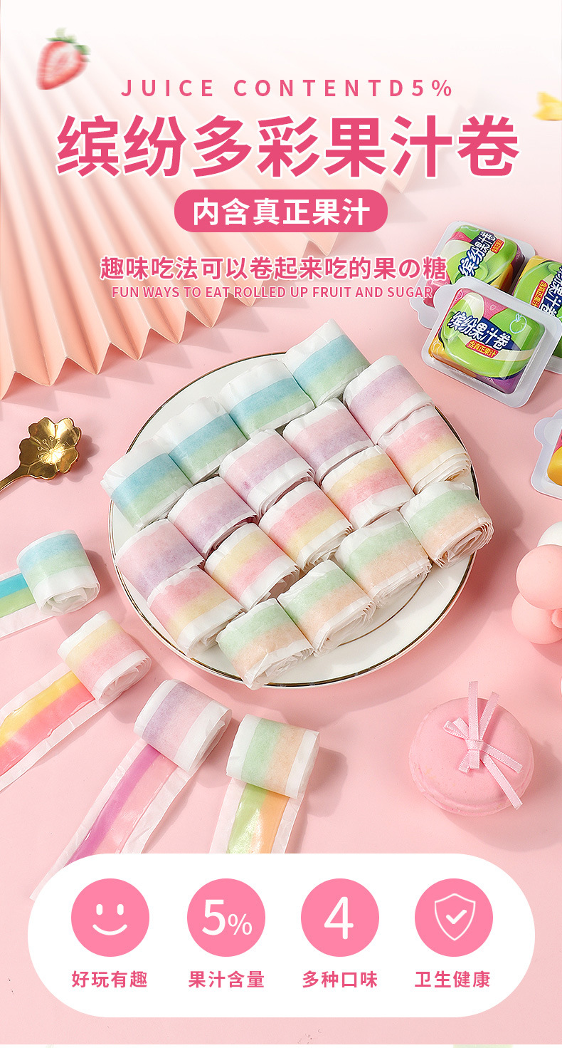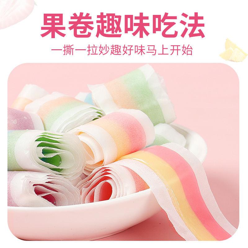 【可以卷起来吃的糖果!果汁卷软糖】缤纷多彩果汁卷一撕一拉妙趣好味,鲜果香甜 甜蜜爽口欢乐加倍,童年怀旧小零食休闲食品高颜值糖果