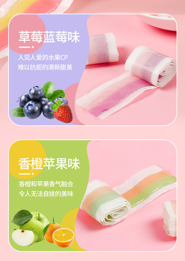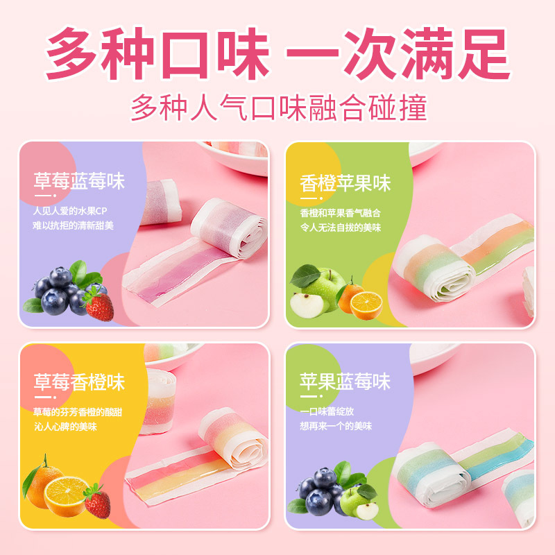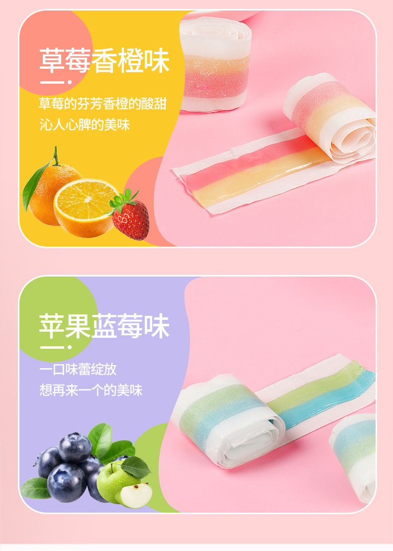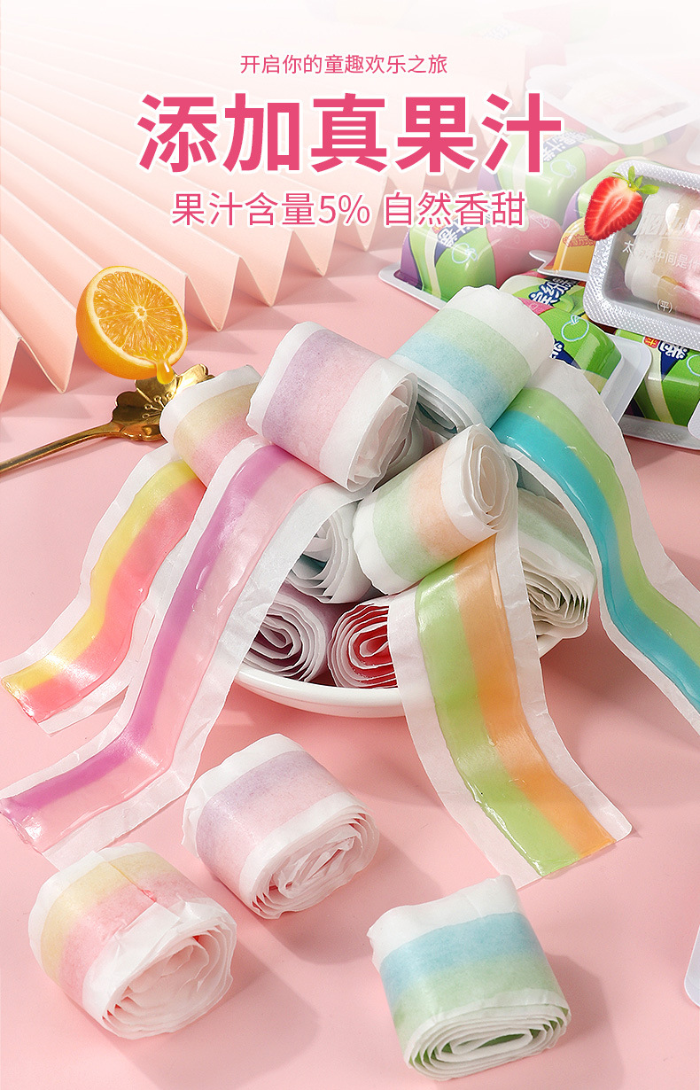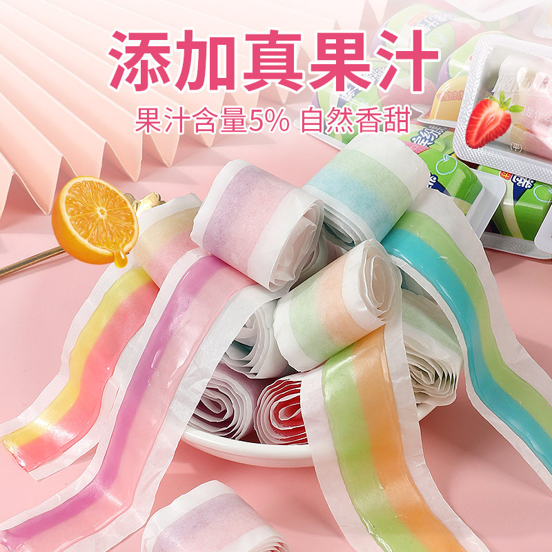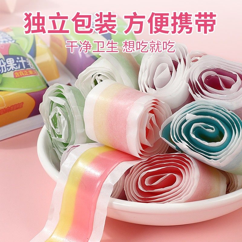 【可以卷起来吃的糖果!果汁卷软糖】缤纷多彩果汁卷一撕一拉妙趣好味,鲜果香甜 甜蜜爽口欢乐加倍,童年怀旧小零食休闲食品高颜值糖果
