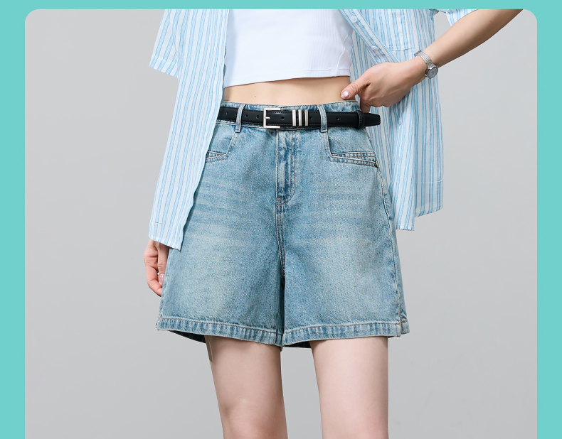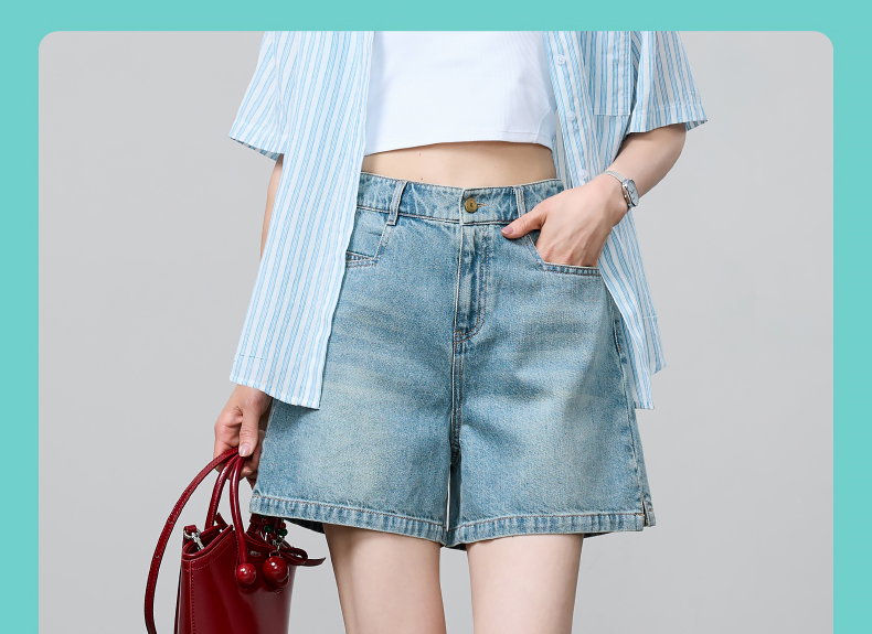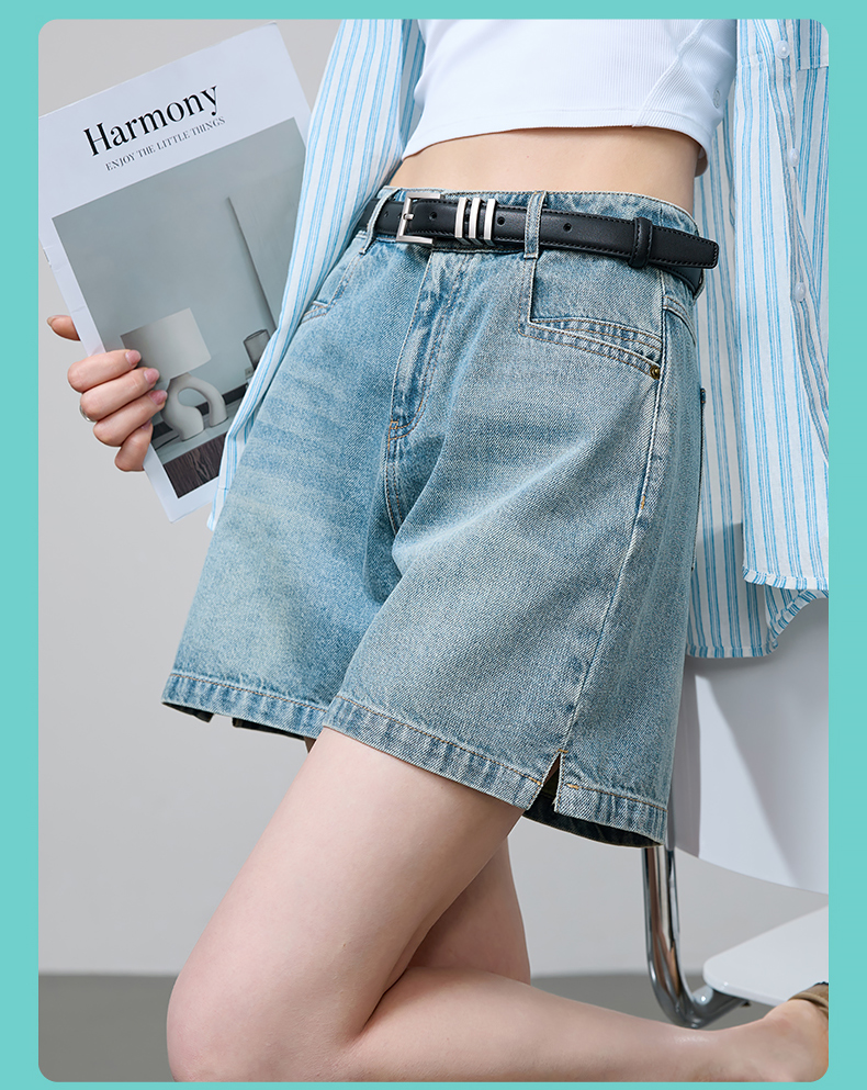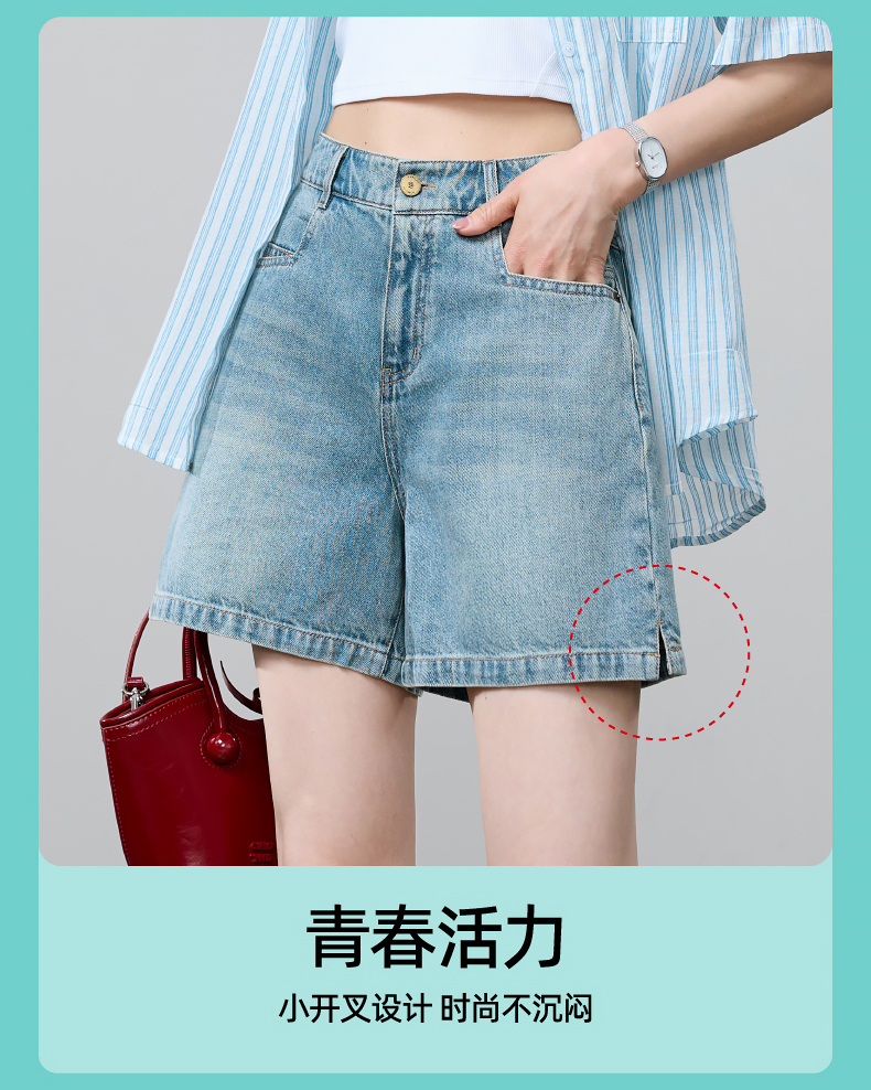 【小开叉四分牛仔短裤】逸阳夏新款青春活力A字版遮肉显瘦裤子1090