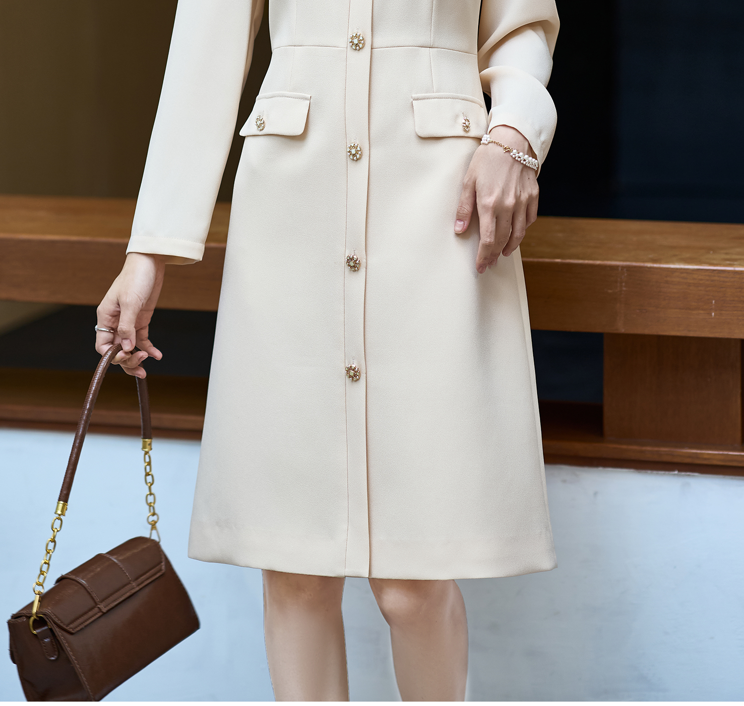 剩S/M/XXL 米思阳2026春季新款法式高级感精致小香风连衣裙高端职业中长裙子
