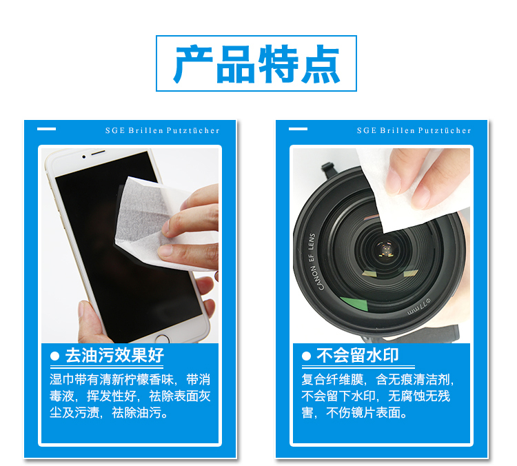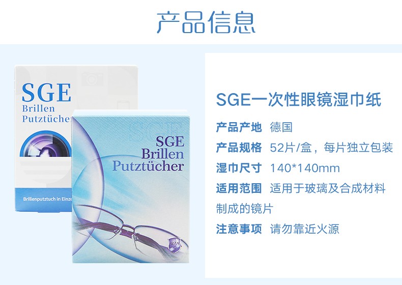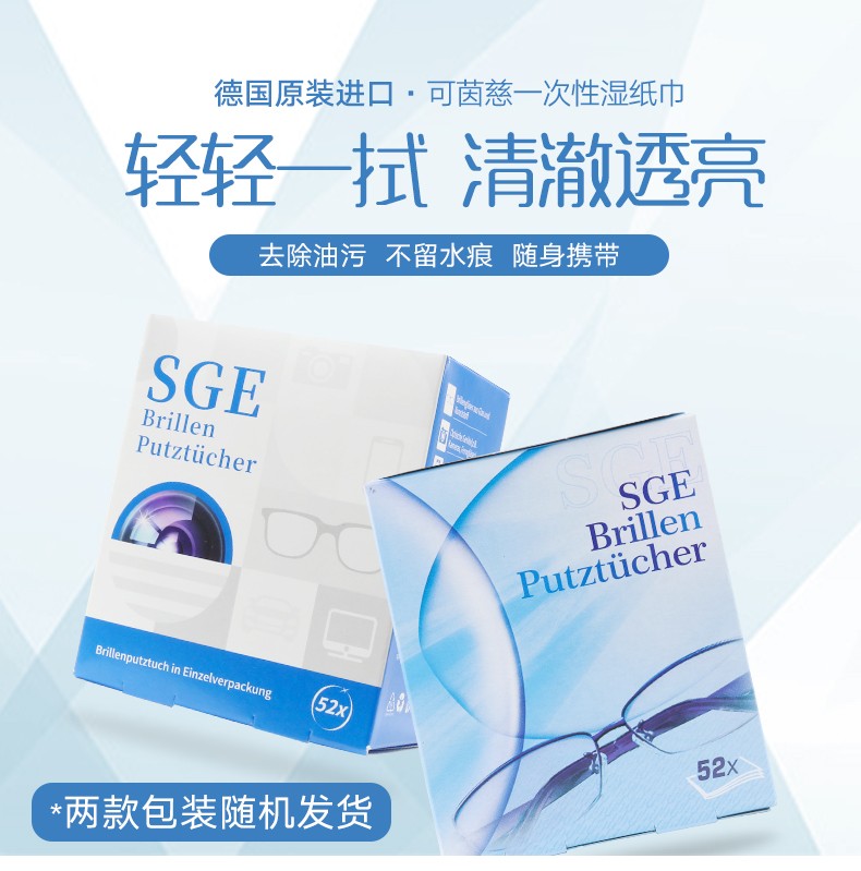 【可茵慈】SGE 德国进口一次性眼镜清洁纸 擦眼镜布 擦镜纸 镜头布屏幕湿巾速干52片/盒装 商品缩略图0 【可茵慈】SGE 德国进口一次性眼镜清洁纸 擦眼镜布 擦镜纸 镜头布屏幕湿巾速干52片/盒装 商品缩略图1 【可茵慈】SGE 德国进口一次性眼镜清洁纸 擦眼镜布 擦镜纸 镜头布屏幕湿巾速干52片/盒装 商品缩略图2