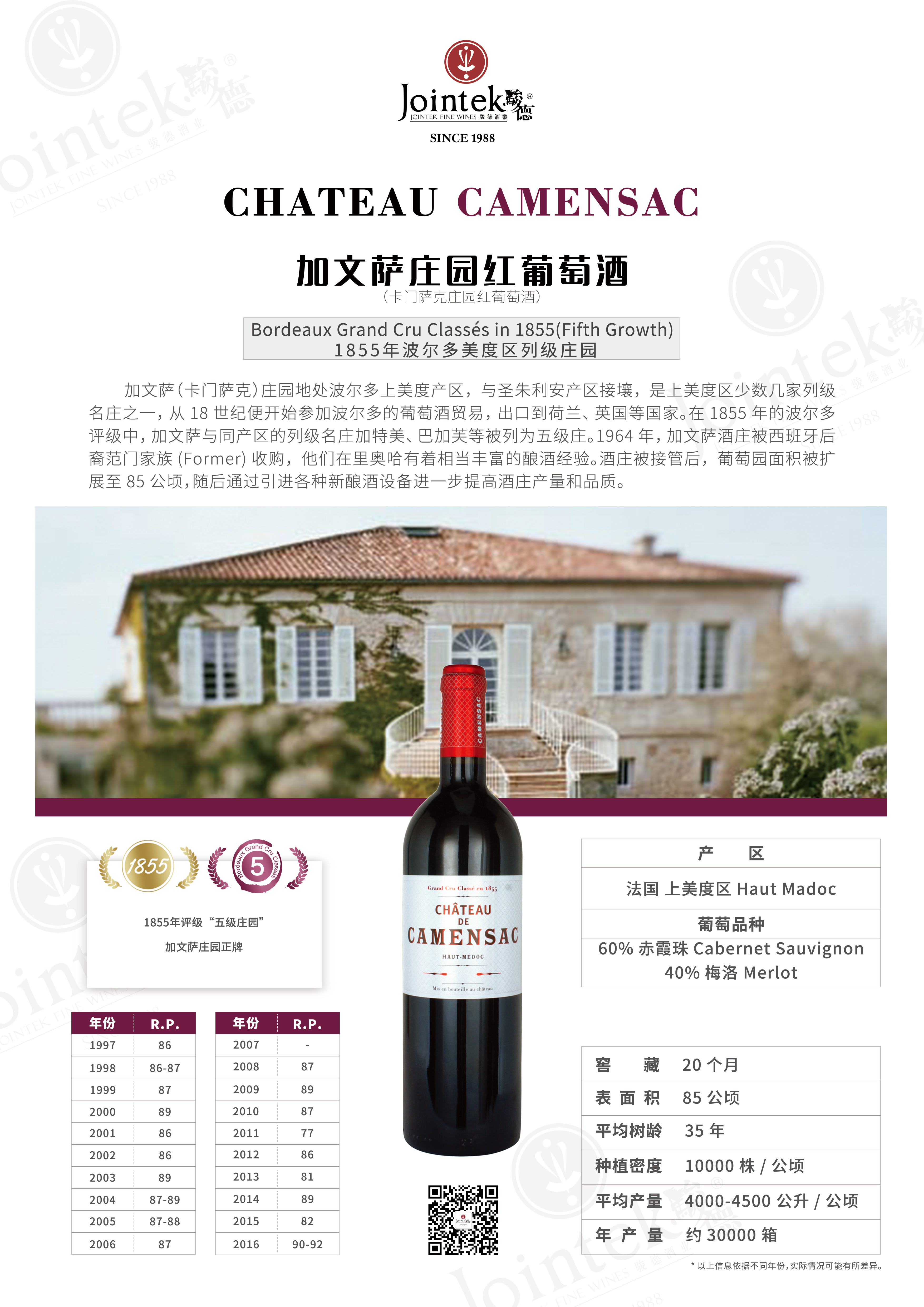 2015 加文萨庄园红葡萄酒 Chateau Camensac 750ml