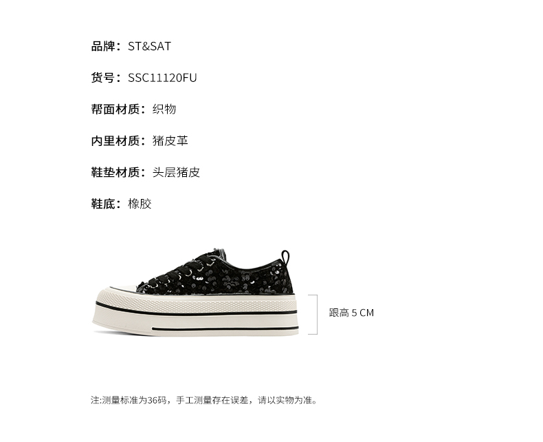 星期六时髦亮片厚底增高系带休闲鞋SSC11120FU