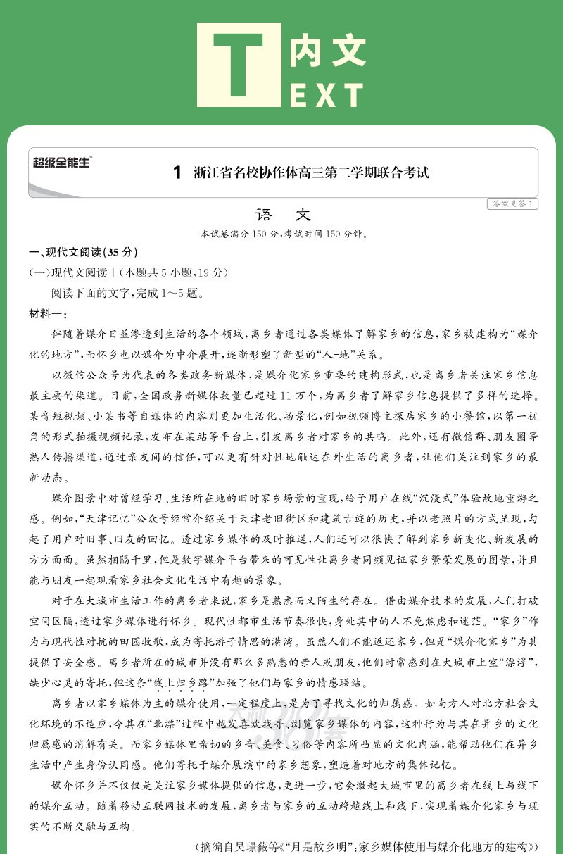 天利38套 2026浙江省名校高考模拟试题汇编(第一辑)语文 数学 英语 物理 化学 生物 政治 历史 地理 技术