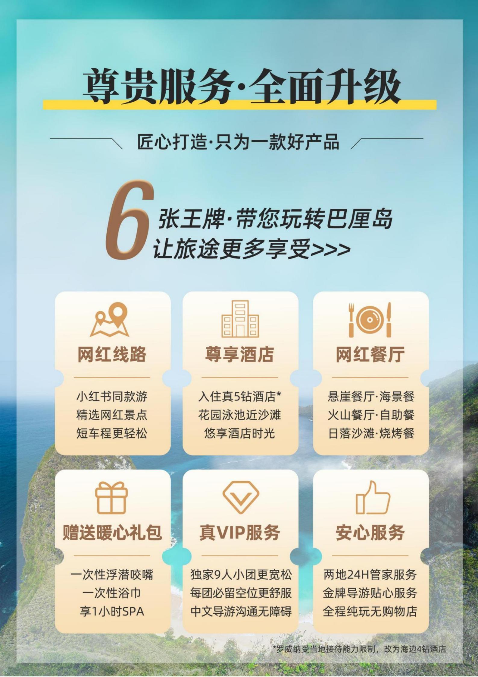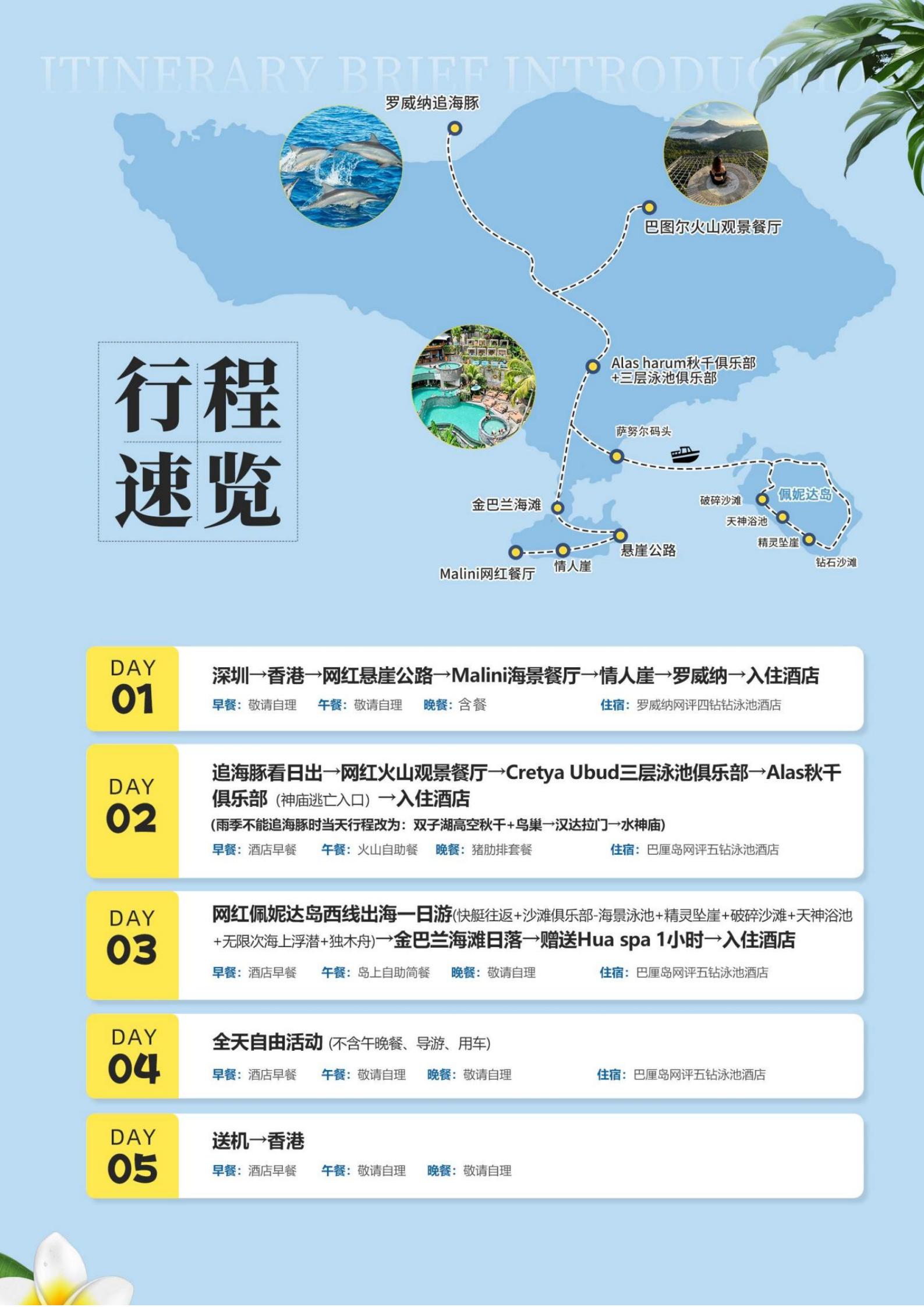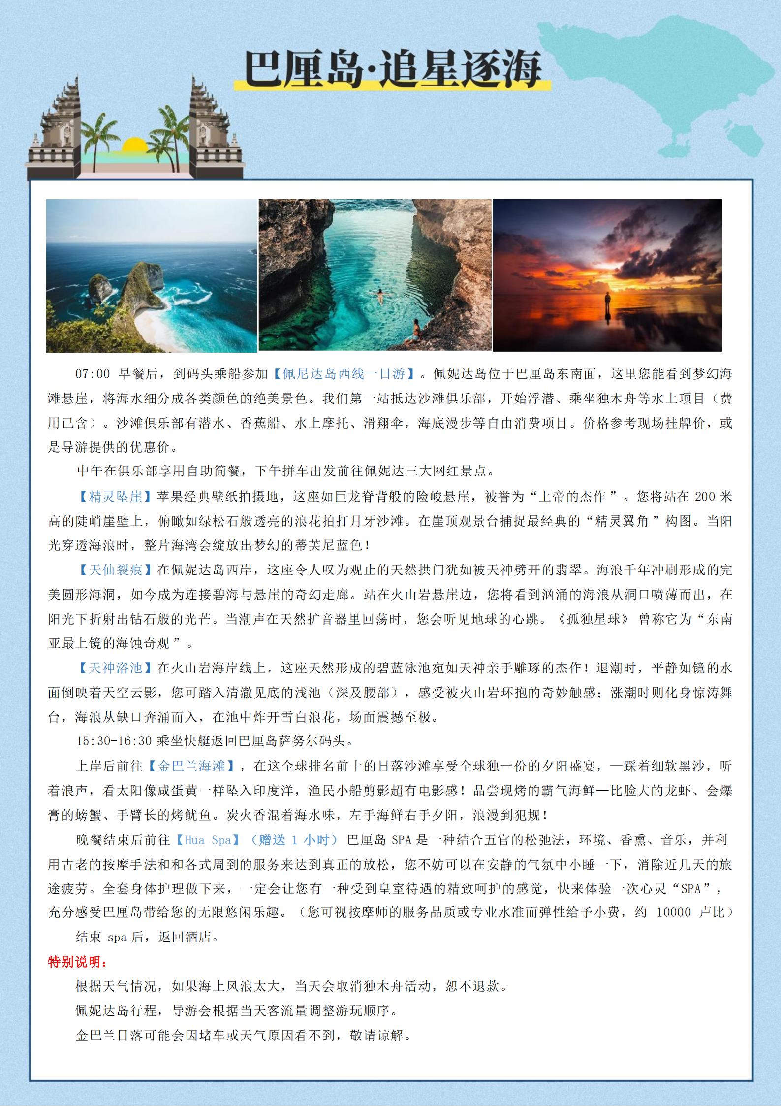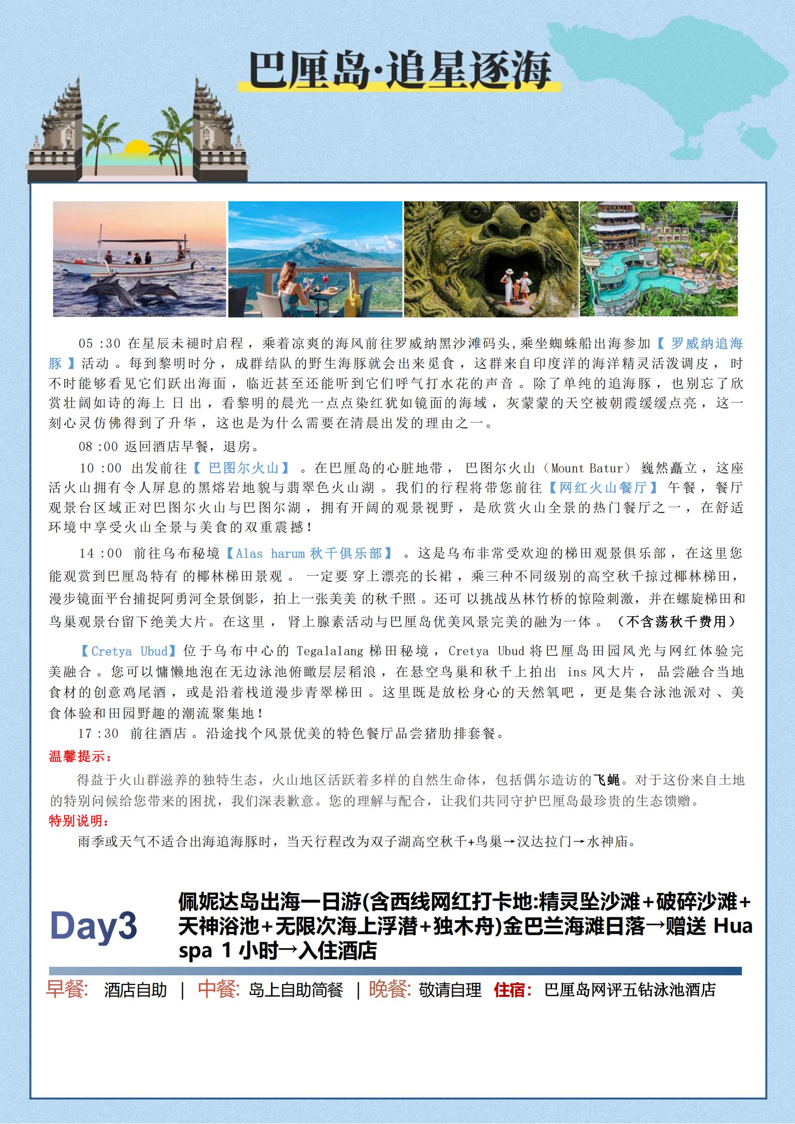 【五一】<巴厘岛+罗威纳追海豚+巴图尔火山5天(2-9人小团)>情人崖、佩尼达岛、金巴兰海滩、SPA、1天自由活动