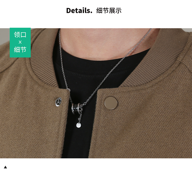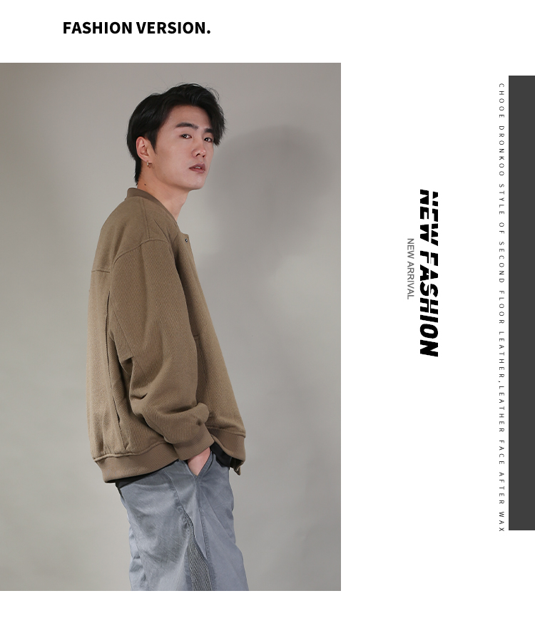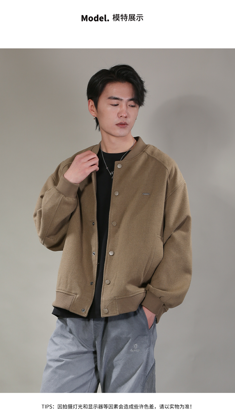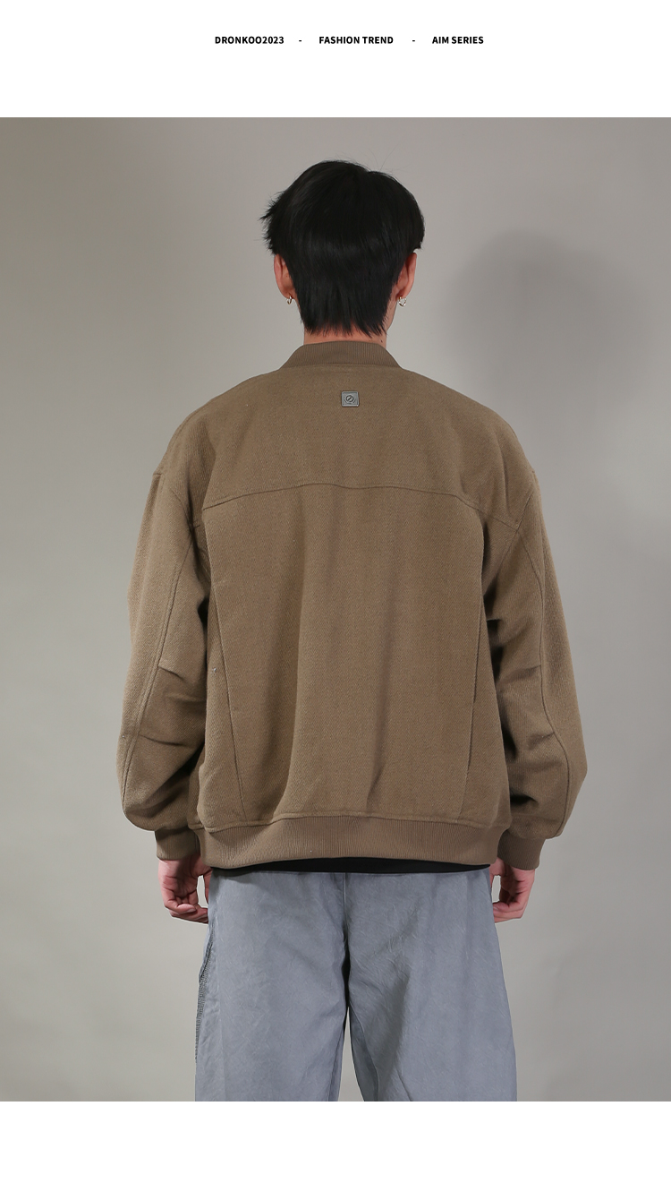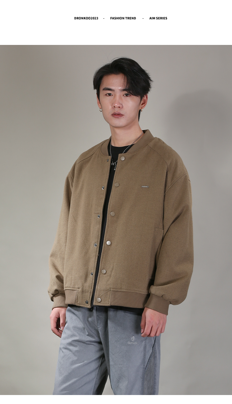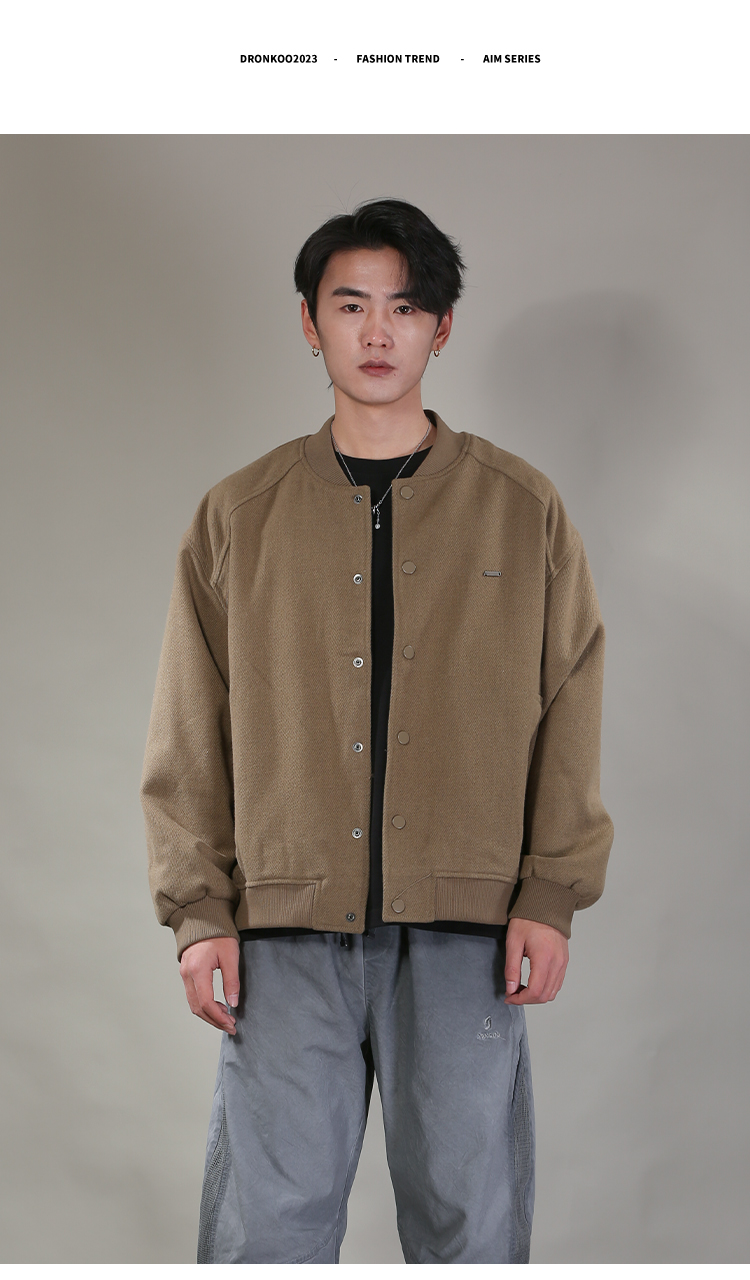 DRONKOO 2026 棒球领左胸金属标仿呢料厚夹克