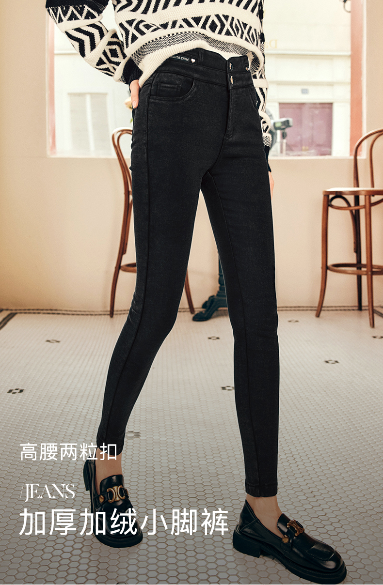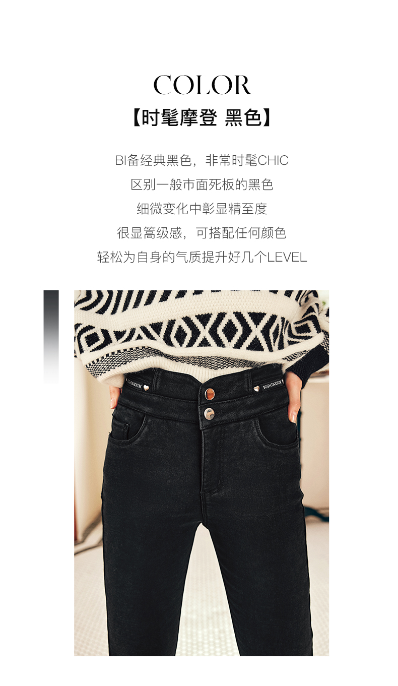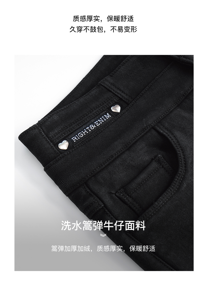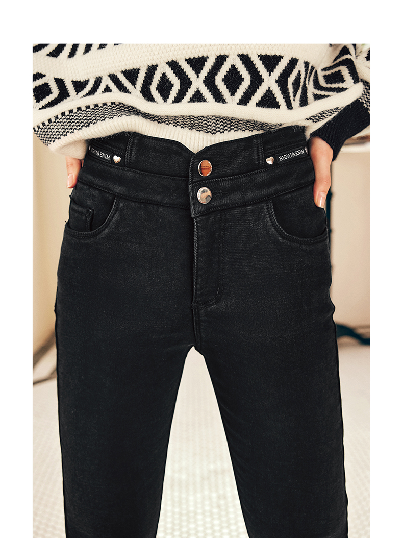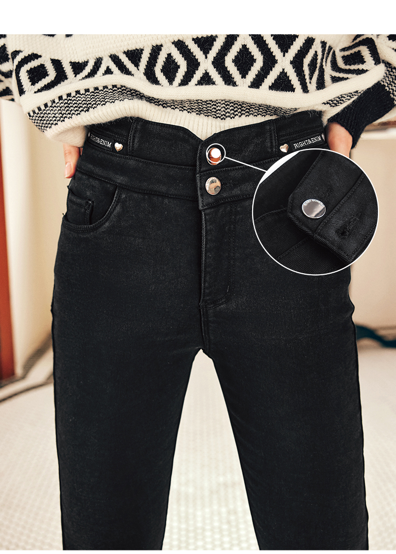 OLrain欧芮儿法式黑色加绒牛仔裤女冬季2025年新款高腰紧身小脚裤