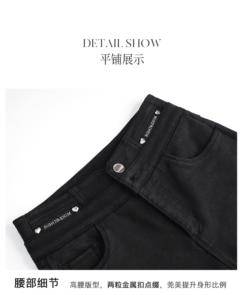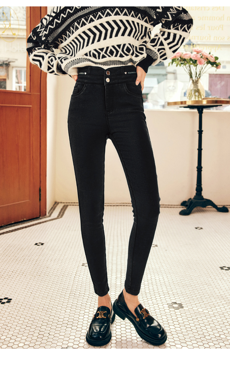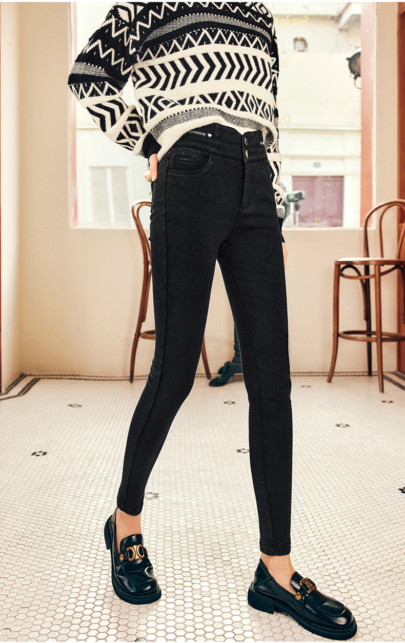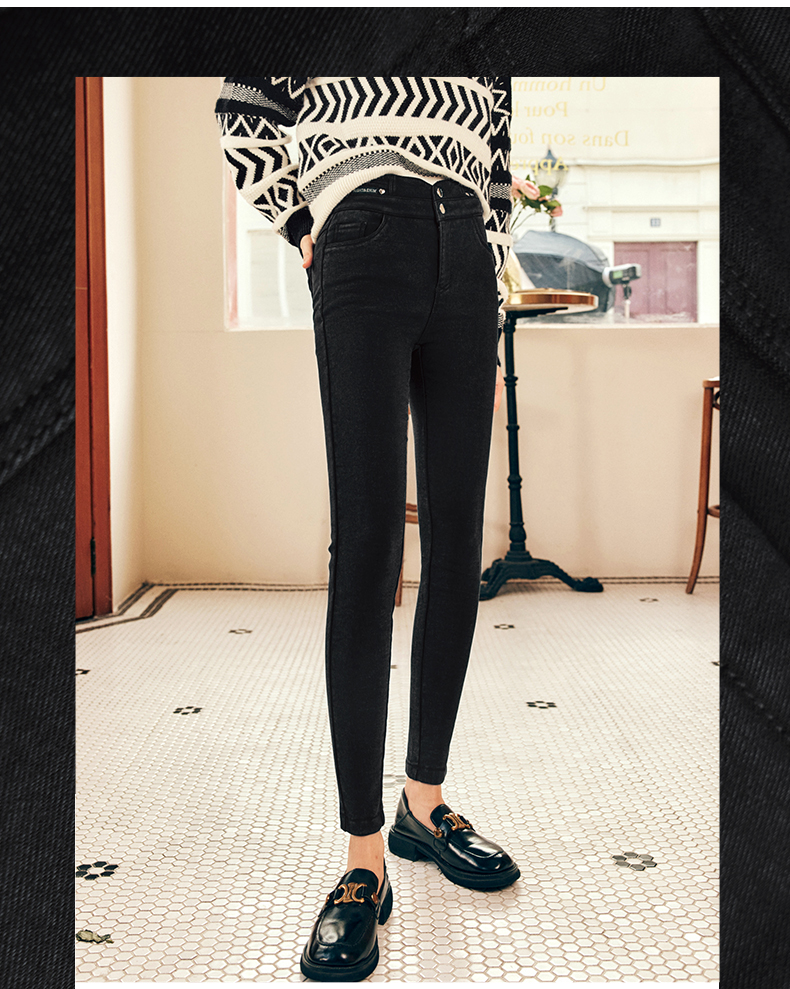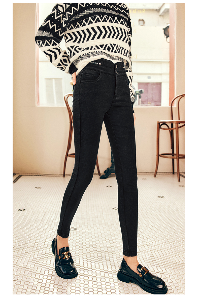 OLrain欧芮儿法式黑色加绒牛仔裤女冬季2025年新款高腰紧身小脚裤