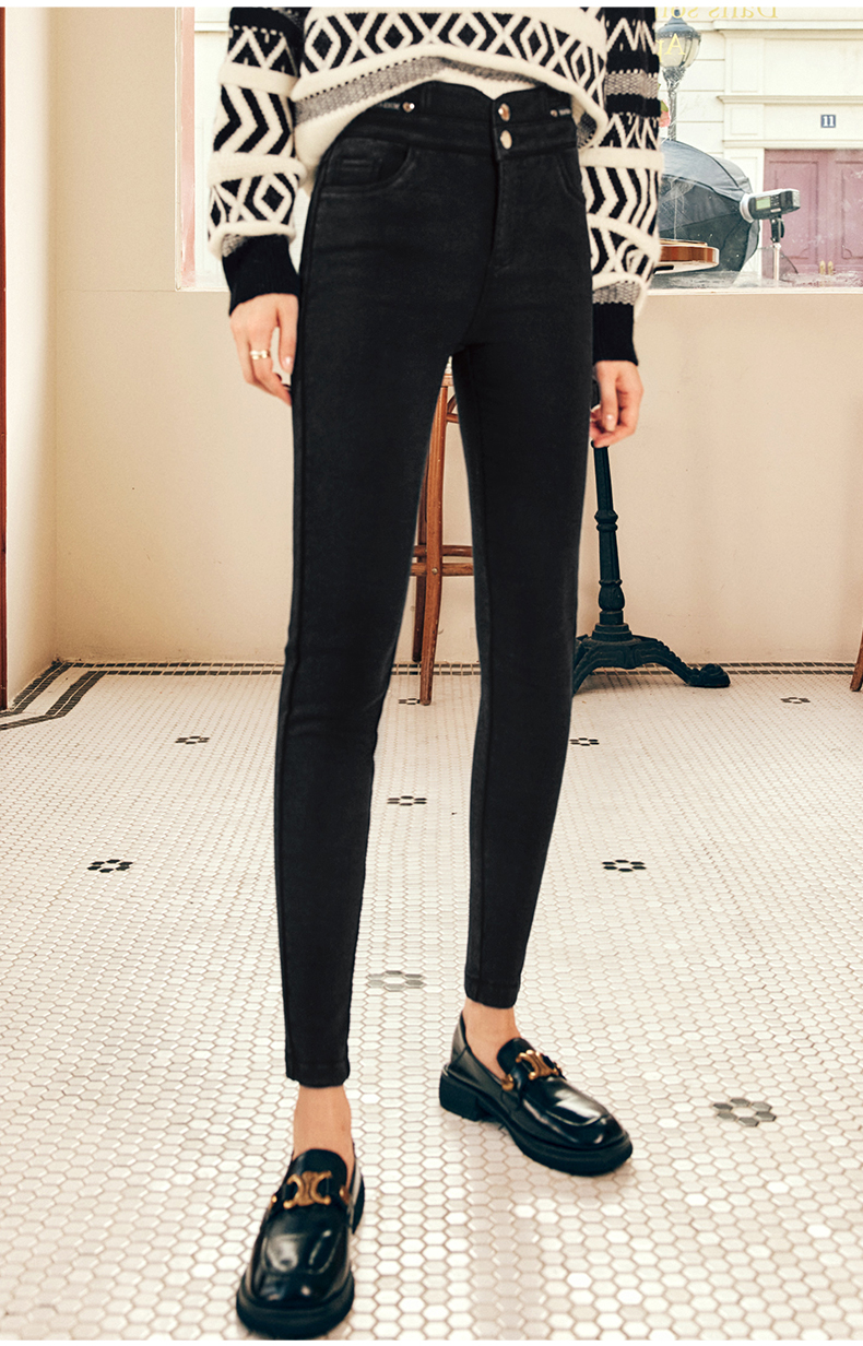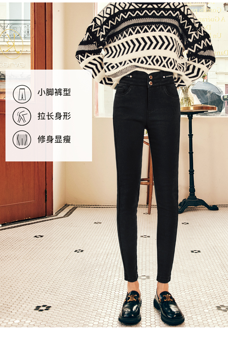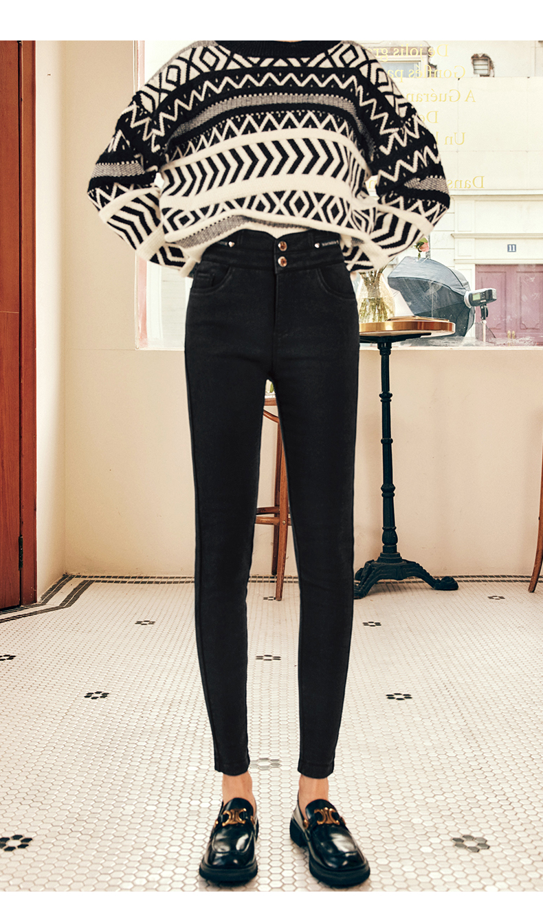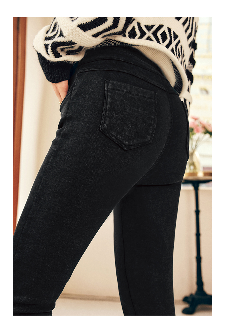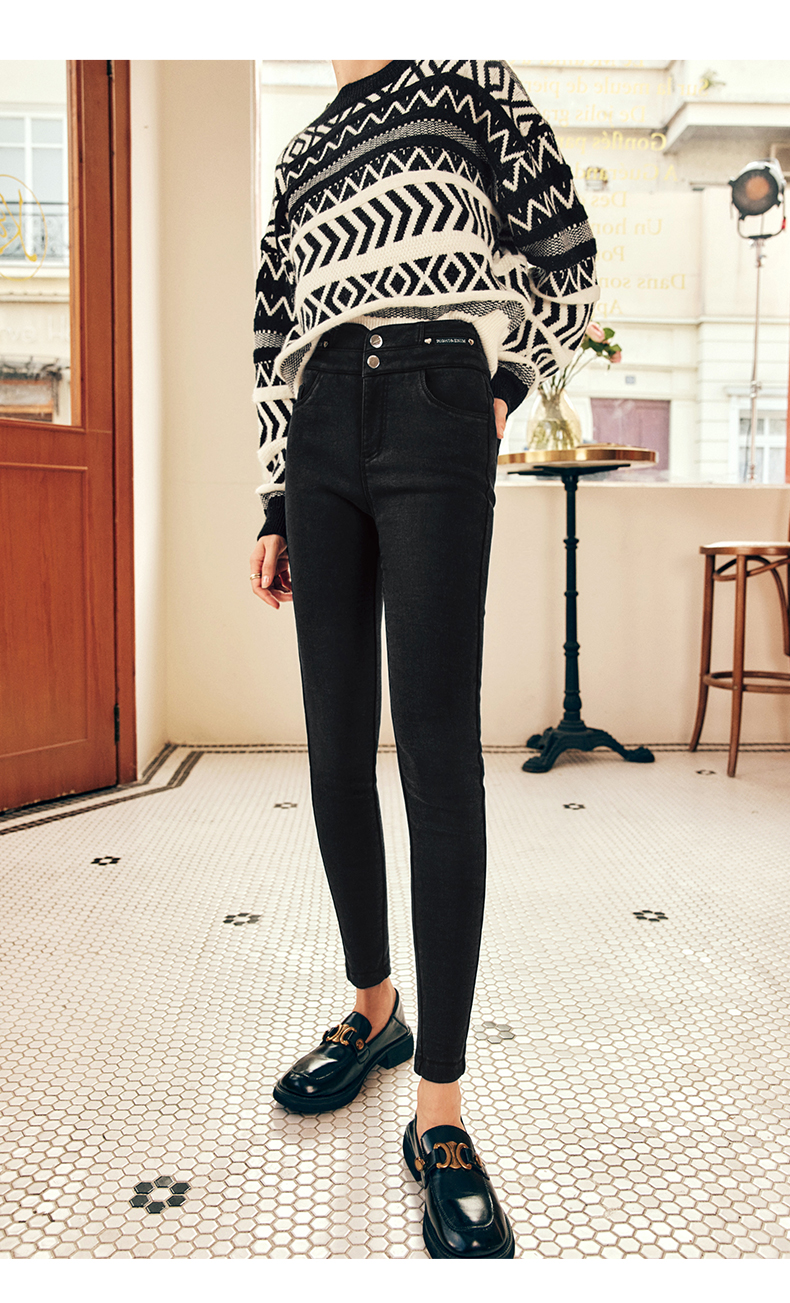 OLrain欧芮儿法式黑色加绒牛仔裤女冬季2025年新款高腰紧身小脚裤