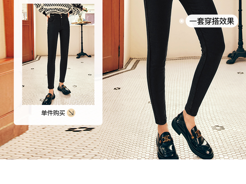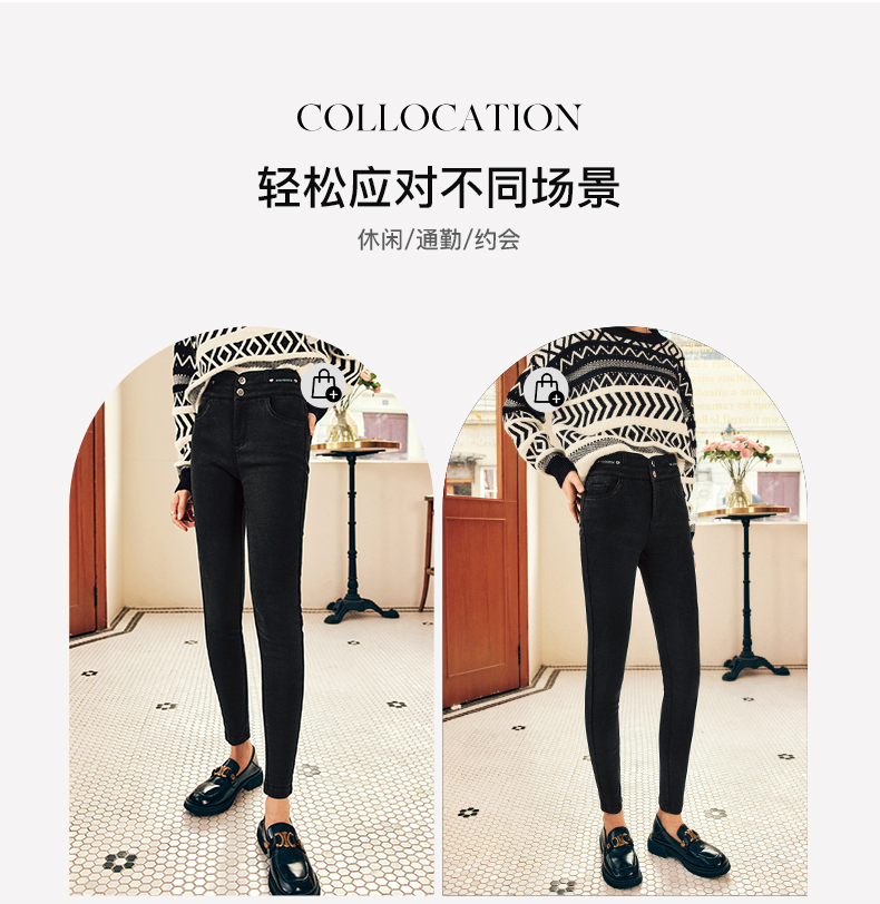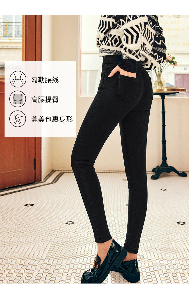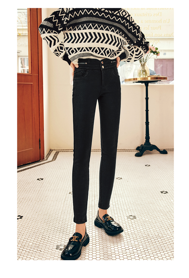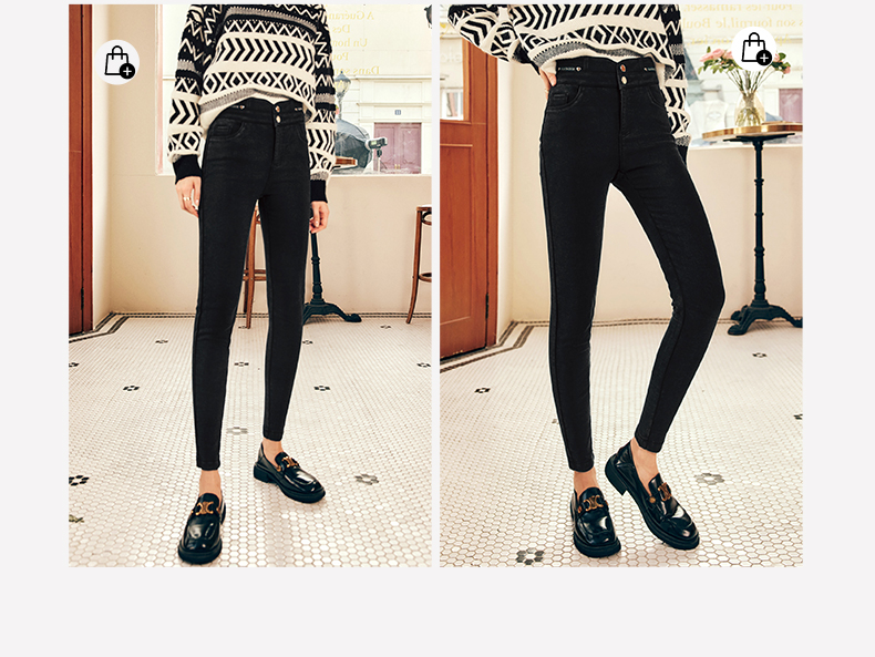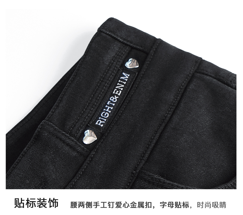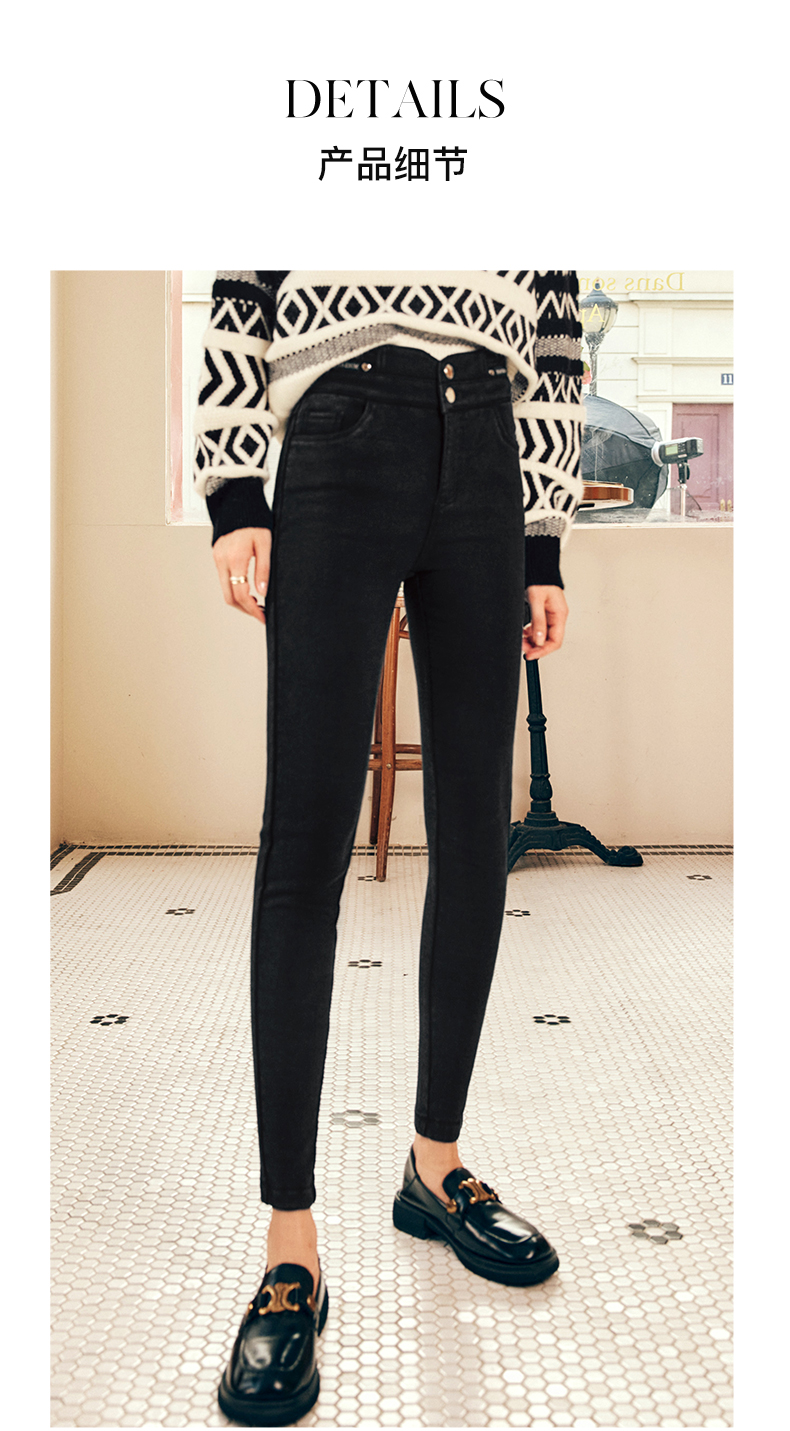 OLrain欧芮儿法式黑色加绒牛仔裤女冬季2025年新款高腰紧身小脚裤