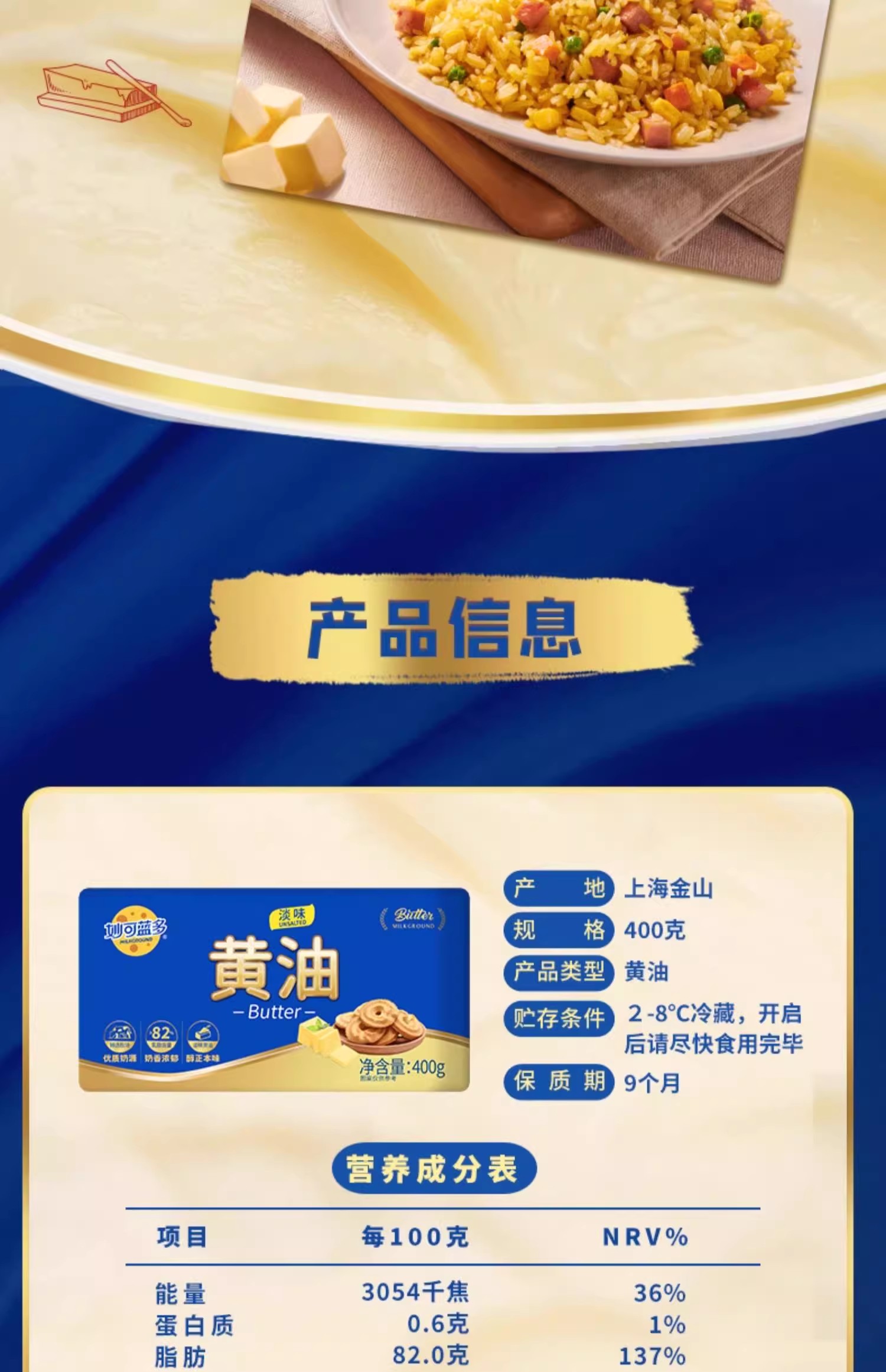 400g 妙可蓝多淡味黄油 动物性黄油 煎牛排面包蛋糕饼干烘焙原料 颜色偏白