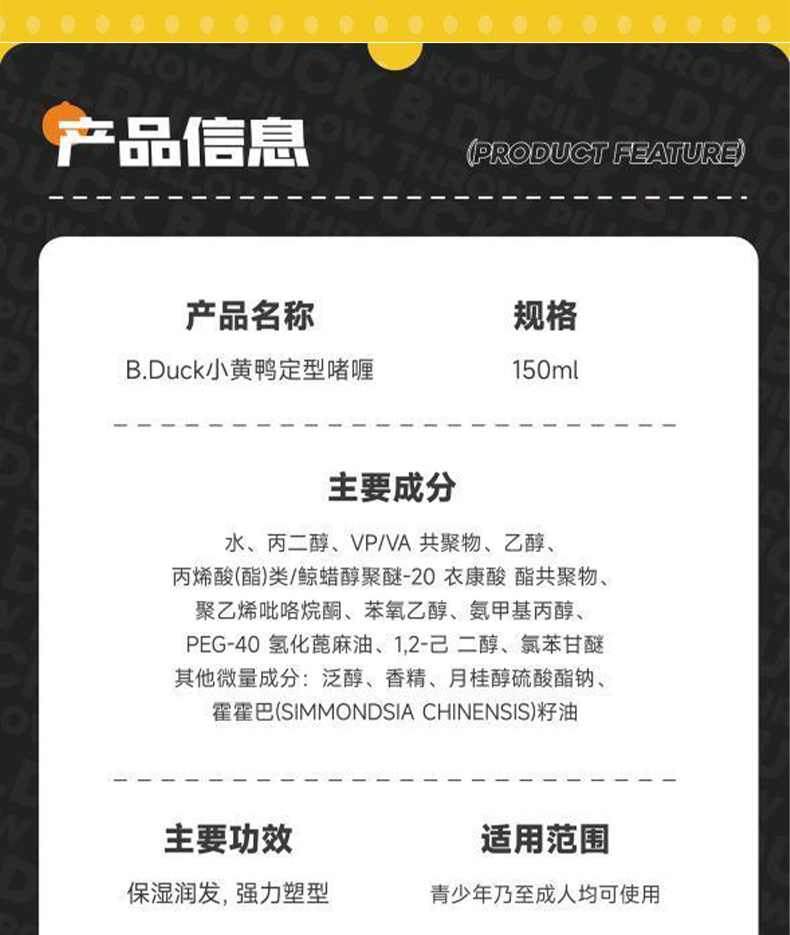 【专柜同款精品】B.Duck小黄鸭炫酷定型啫喱膏150ml