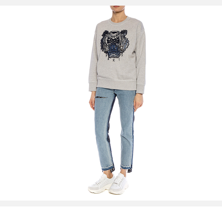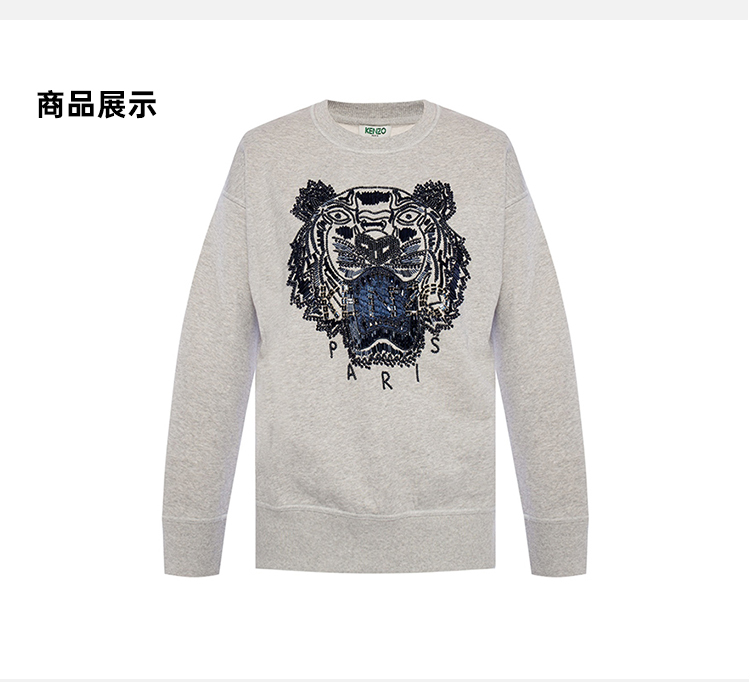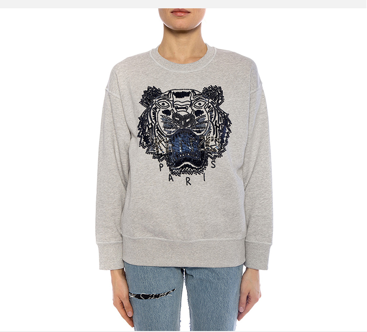 KENZO 高田贤三 女士棉质虎头印花圆领长袖卫衣 灰色 F952 SW741 4XI 93