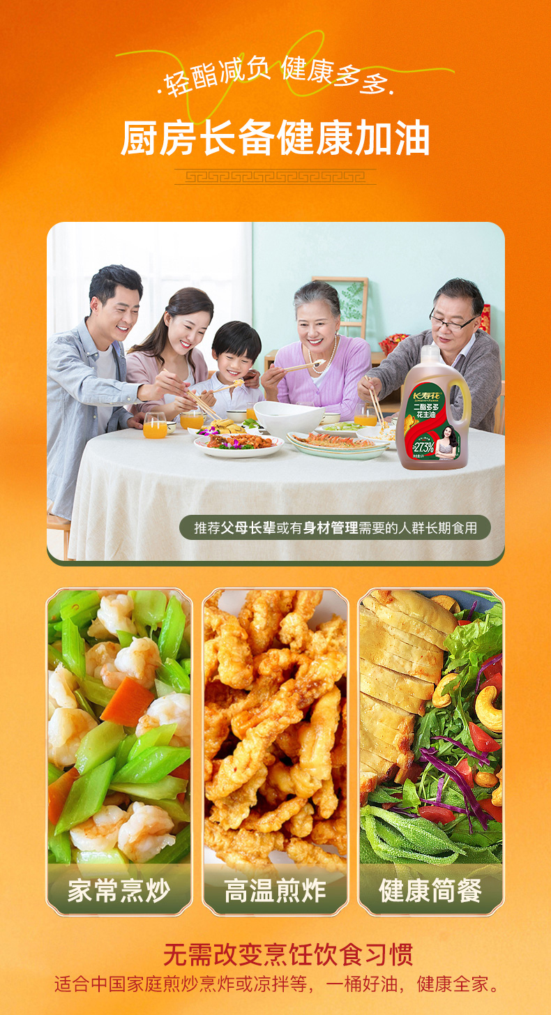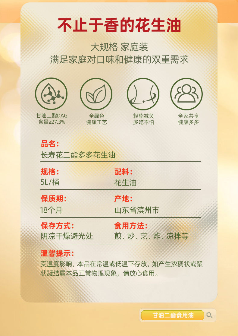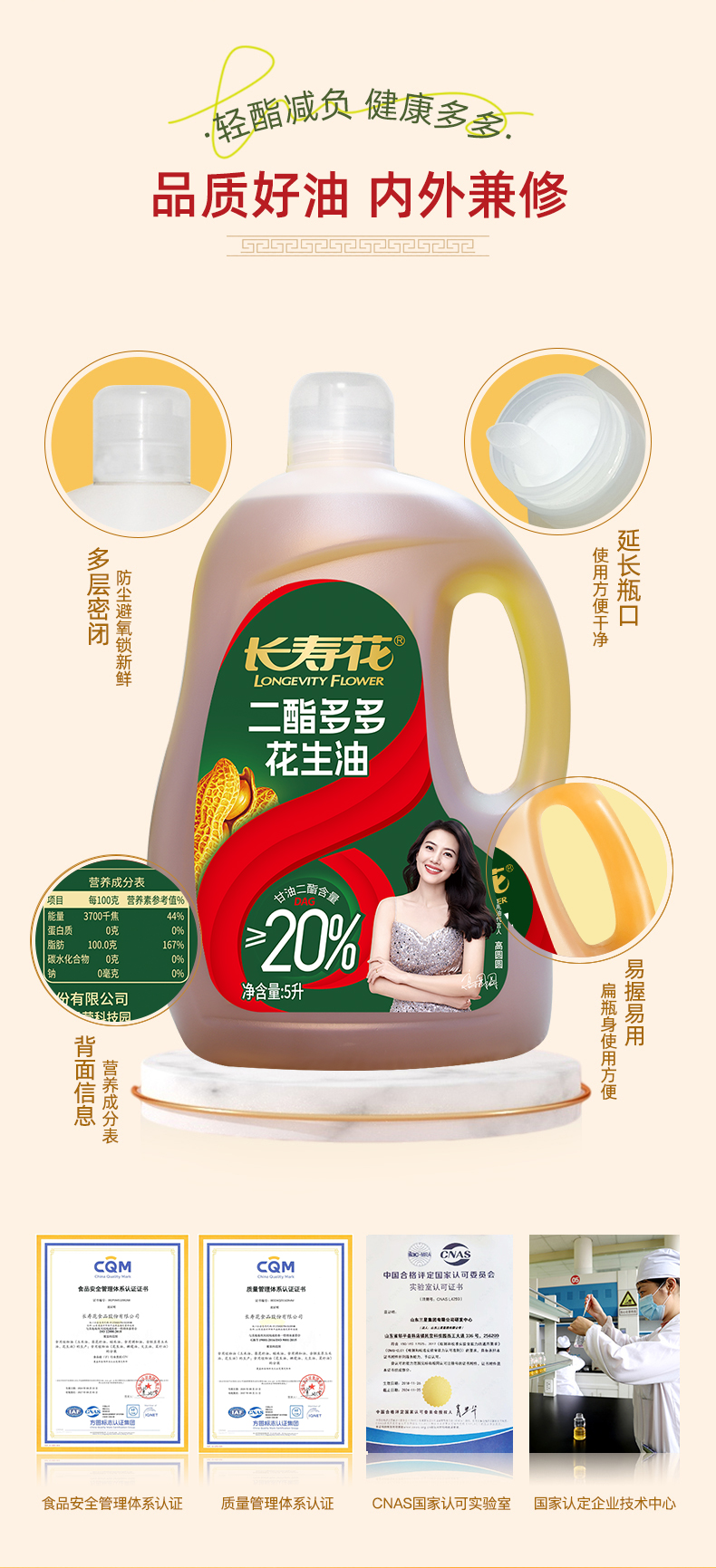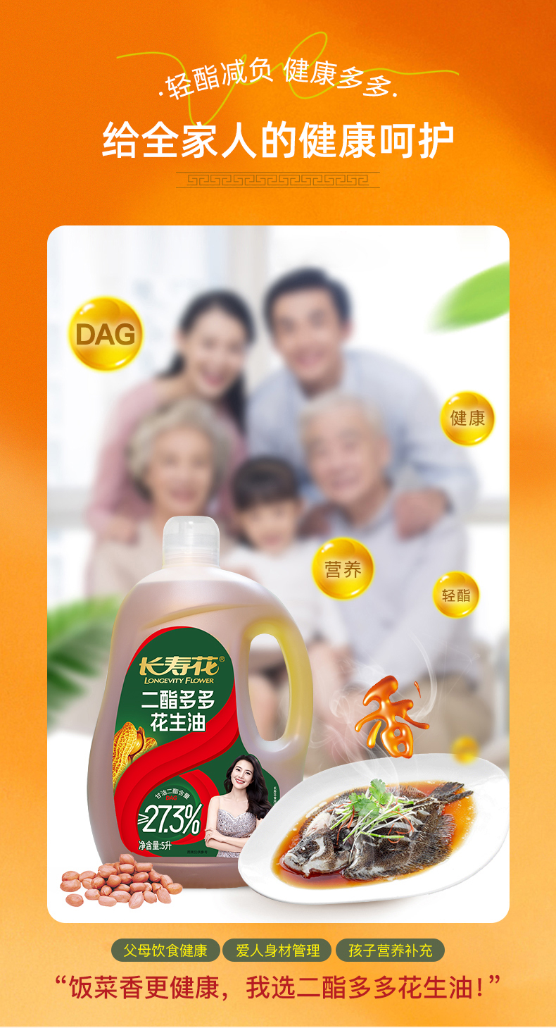 【超值补贴】长寿花二酯多多花生油5L+长粒香大米2.5KG二酯多一点