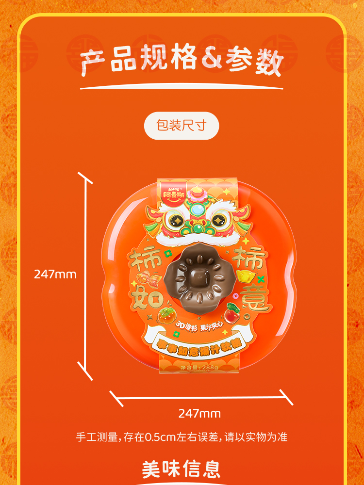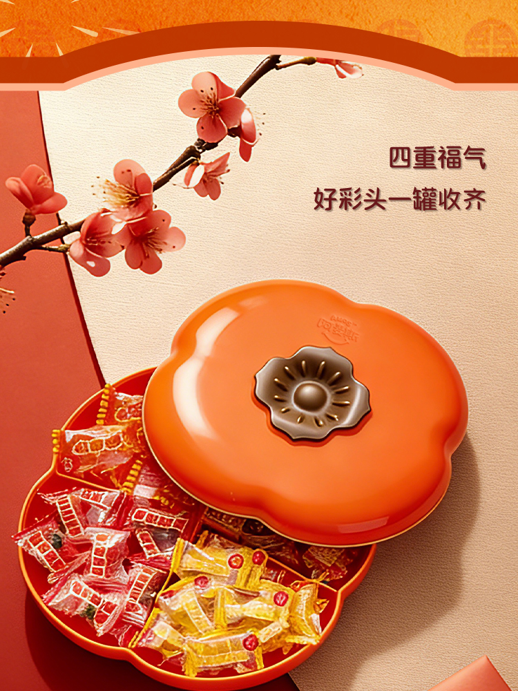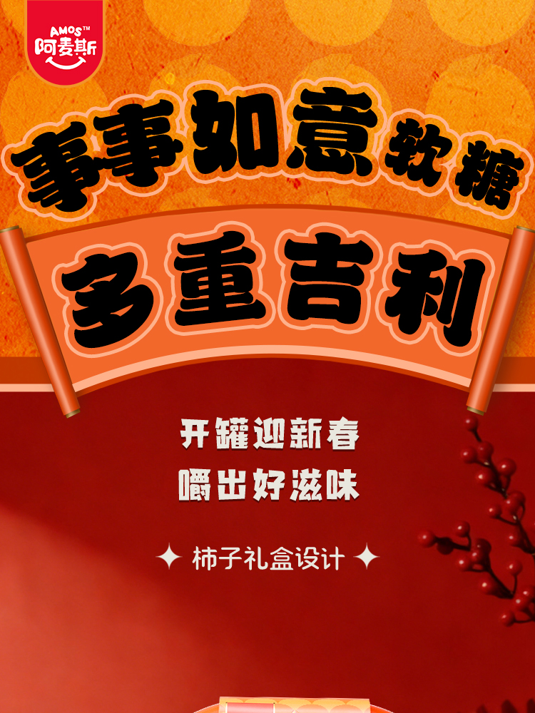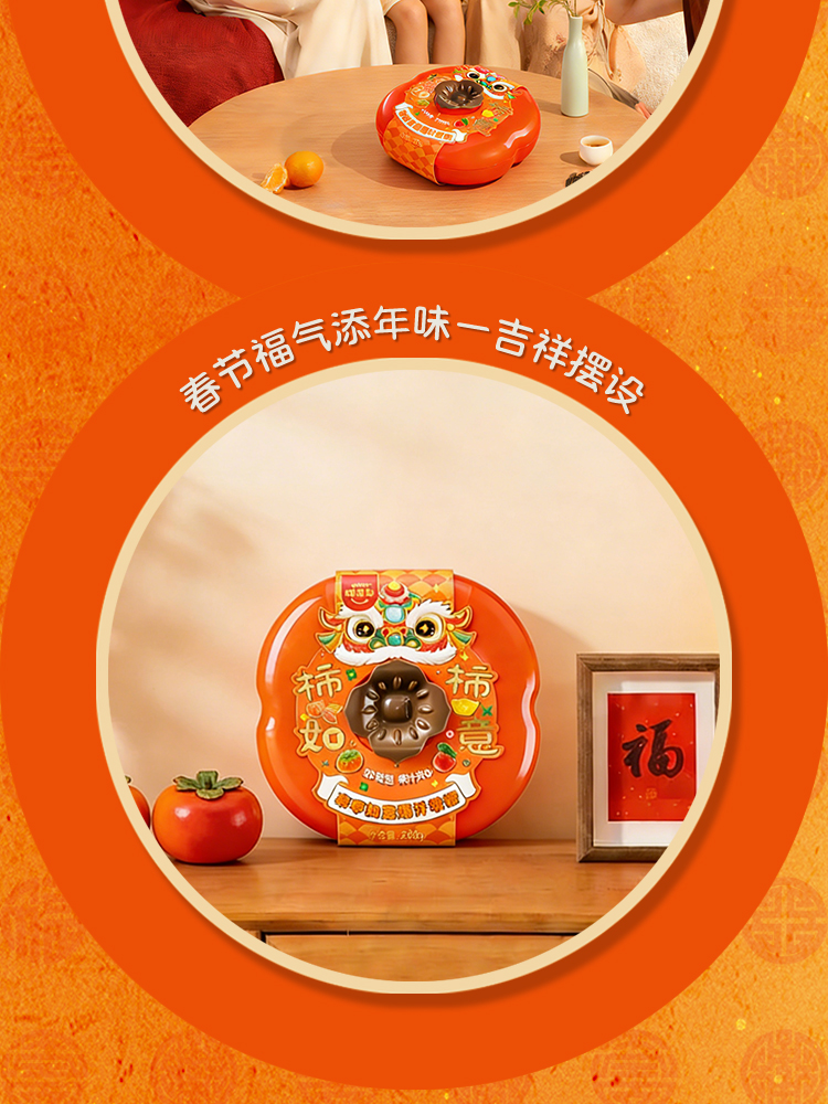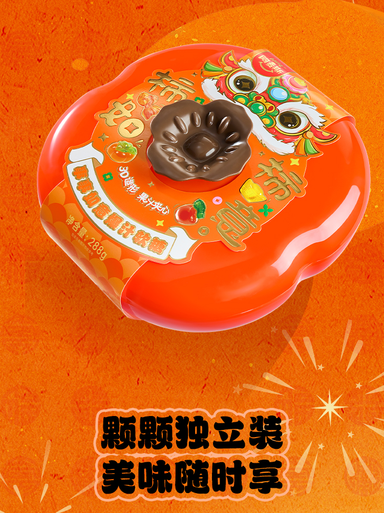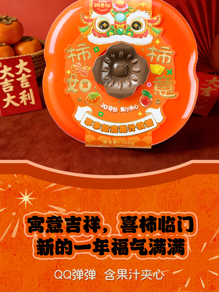 阿麦斯4D水果爆汁软糖事事如意柿子果盘礼盒
