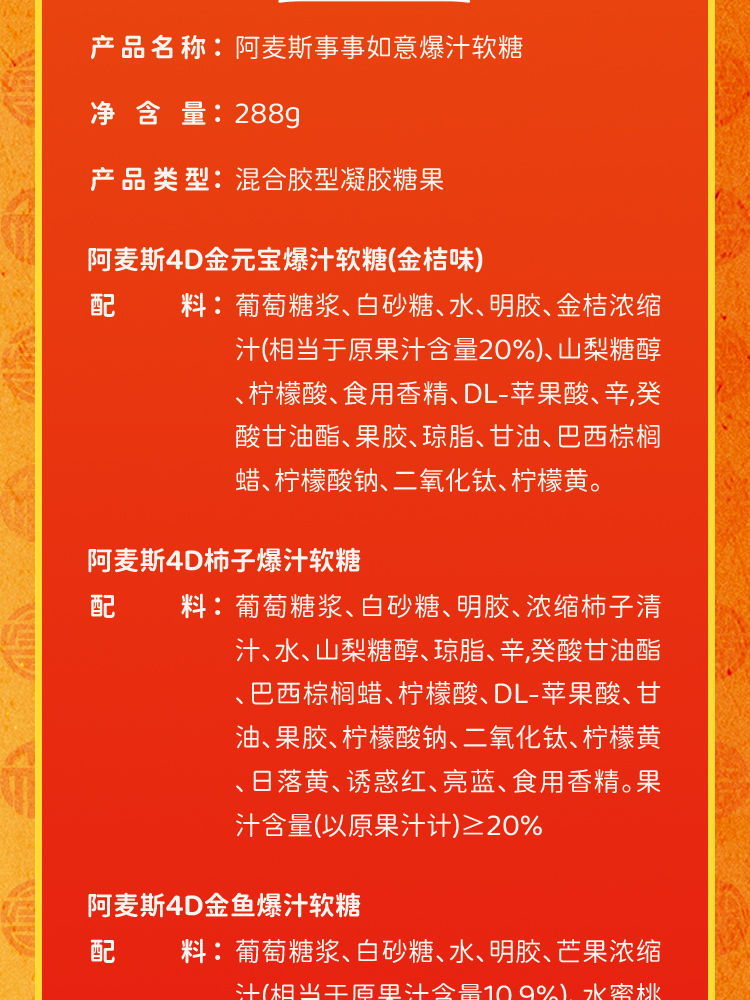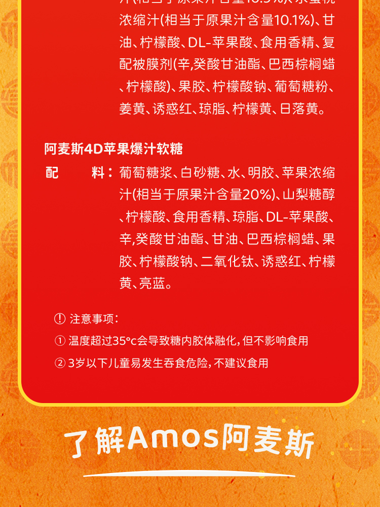 Amos阿麦斯4d爆浆爆汁软糖水果果汁夹心糖果零食儿童礼物450g/228g