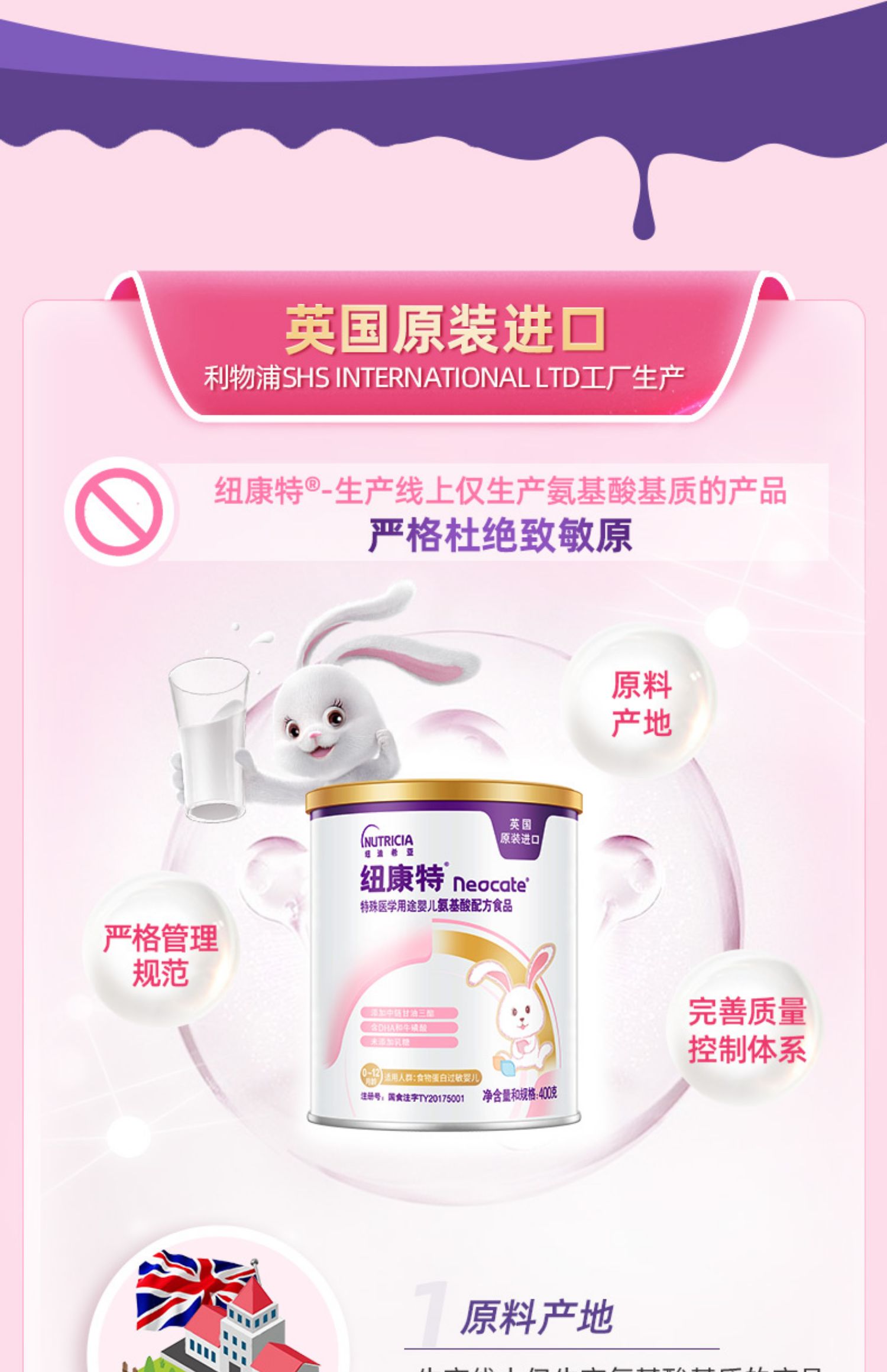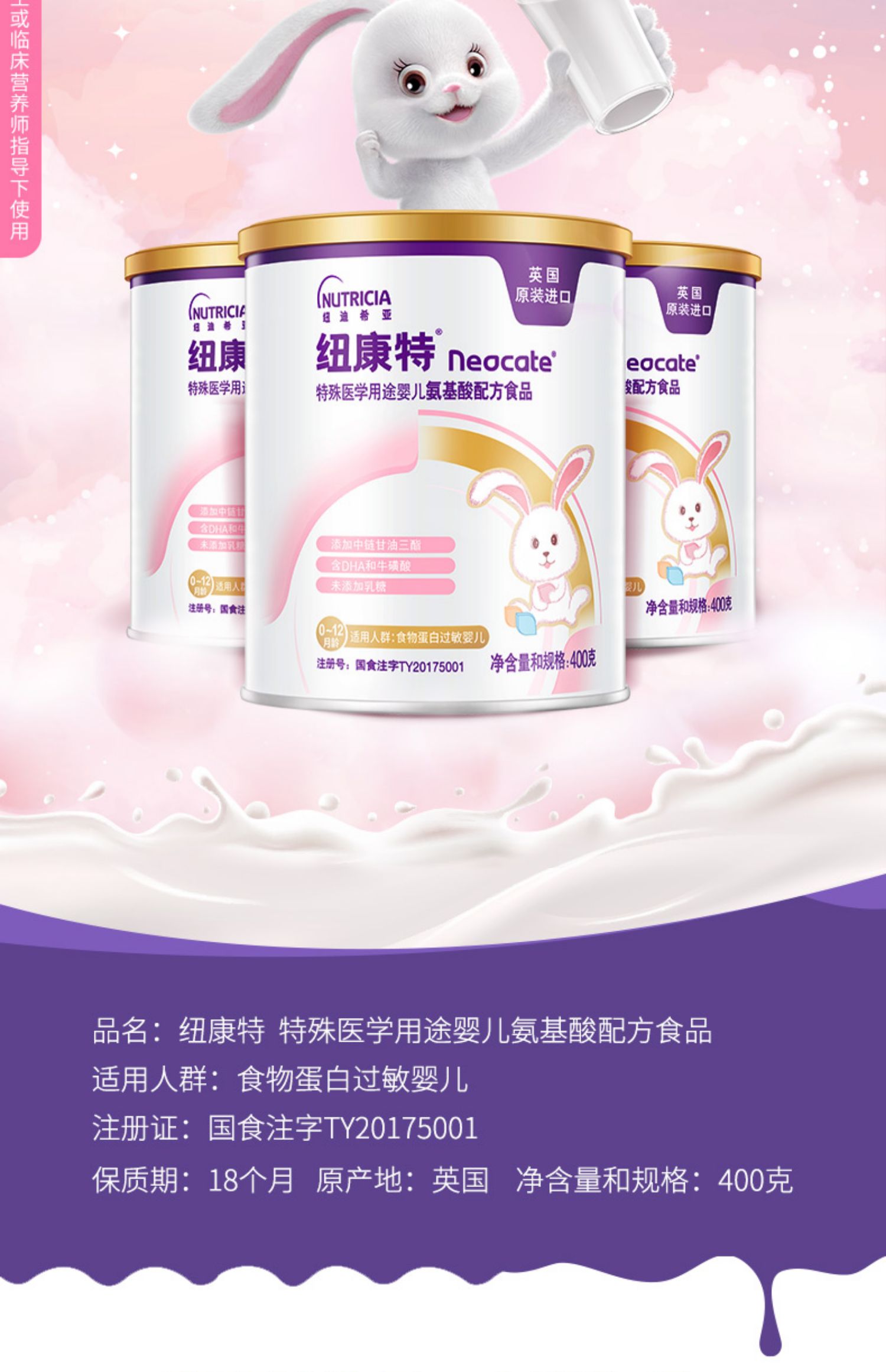 【整件更实惠】纽康特400g/罐特殊医学用途婴儿氨基酸配方奶